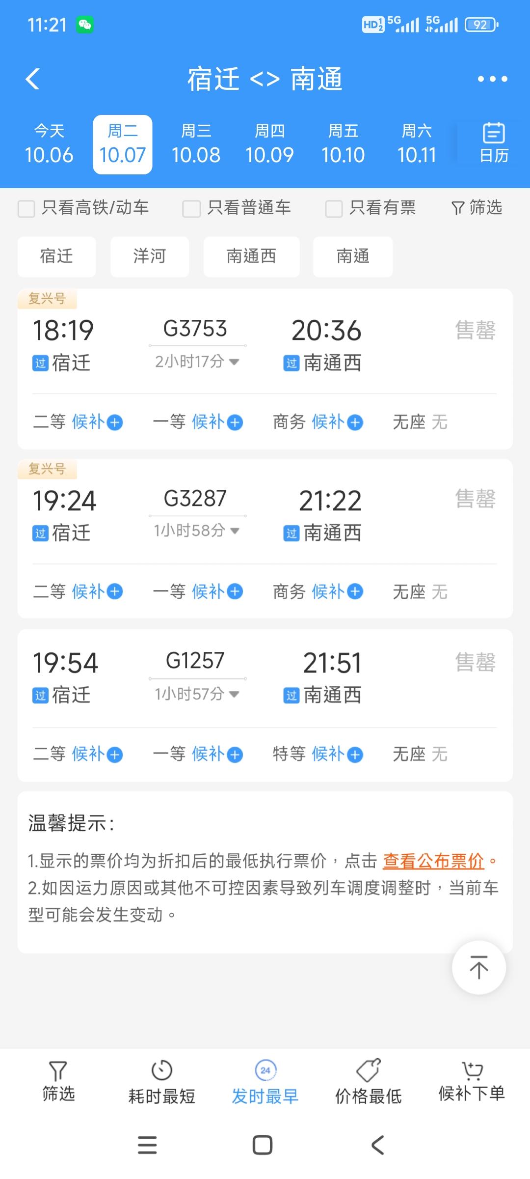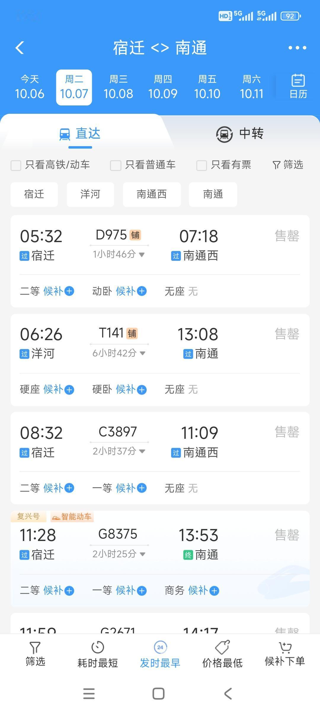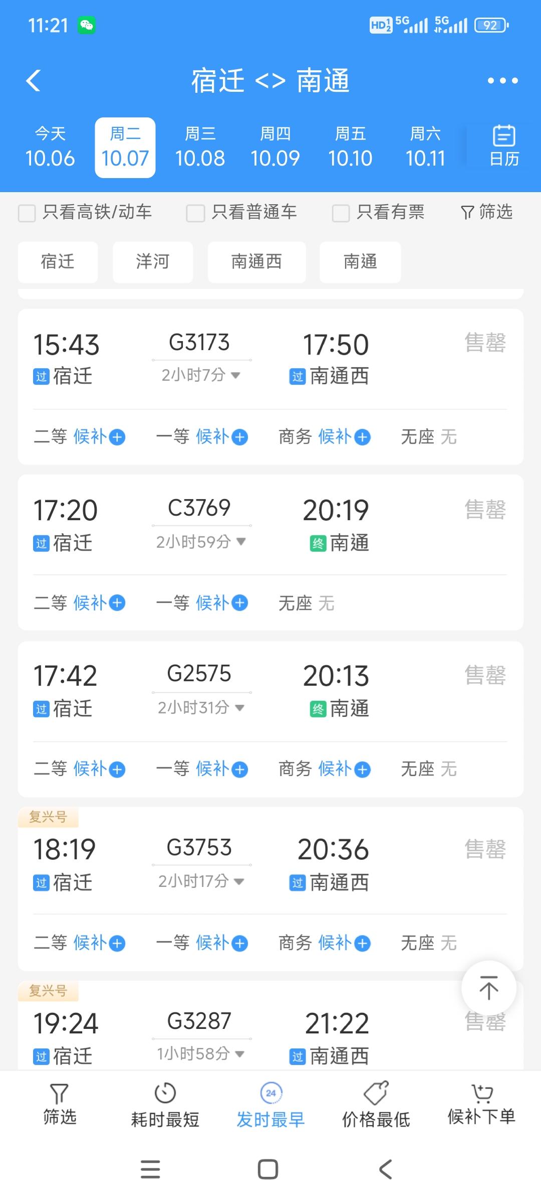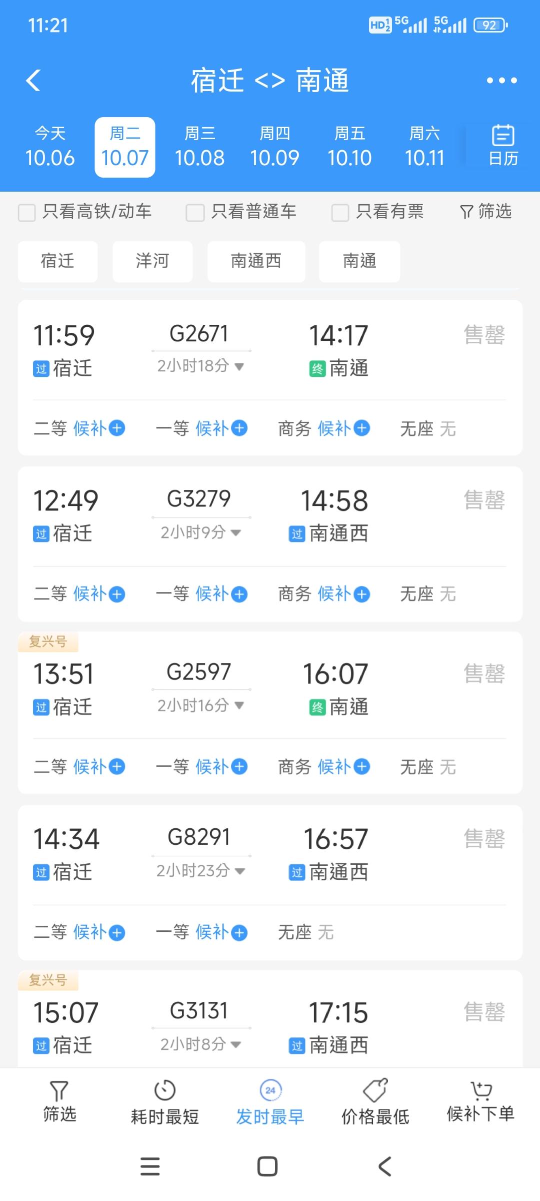 我在宿迁市,挑战一下,明天,宿迁到南通的15趟火车全部售罄后,能不能,回到南通
