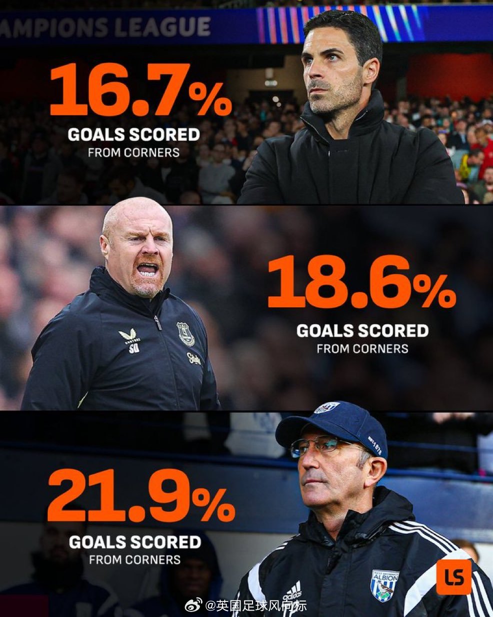 【英超角球之王不是阿森纳】英超时代,带队至少取得300个联赛进球的主帅,最擅长通过角球战术取得进球,并不是阿尔特塔。在这个榜单上面,塔圣只能排名第三位: