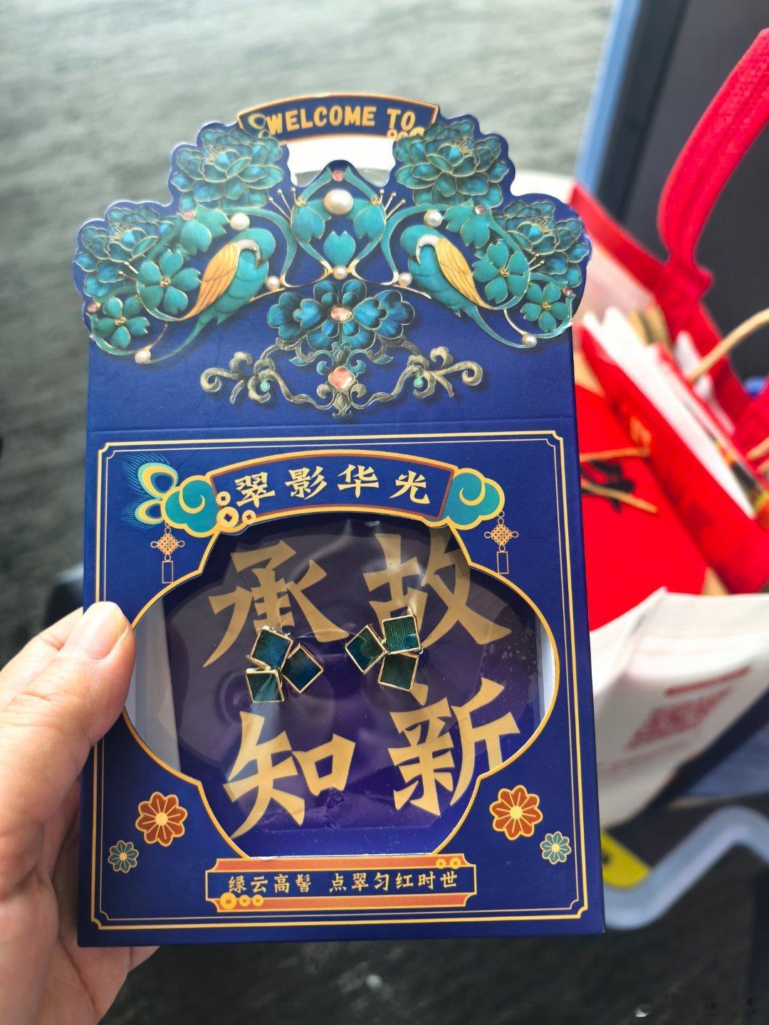 在机场买了点翠工艺孔雀羽耳环,和盛京红的点心,本来我打算在淘宝店买的,结果要后天