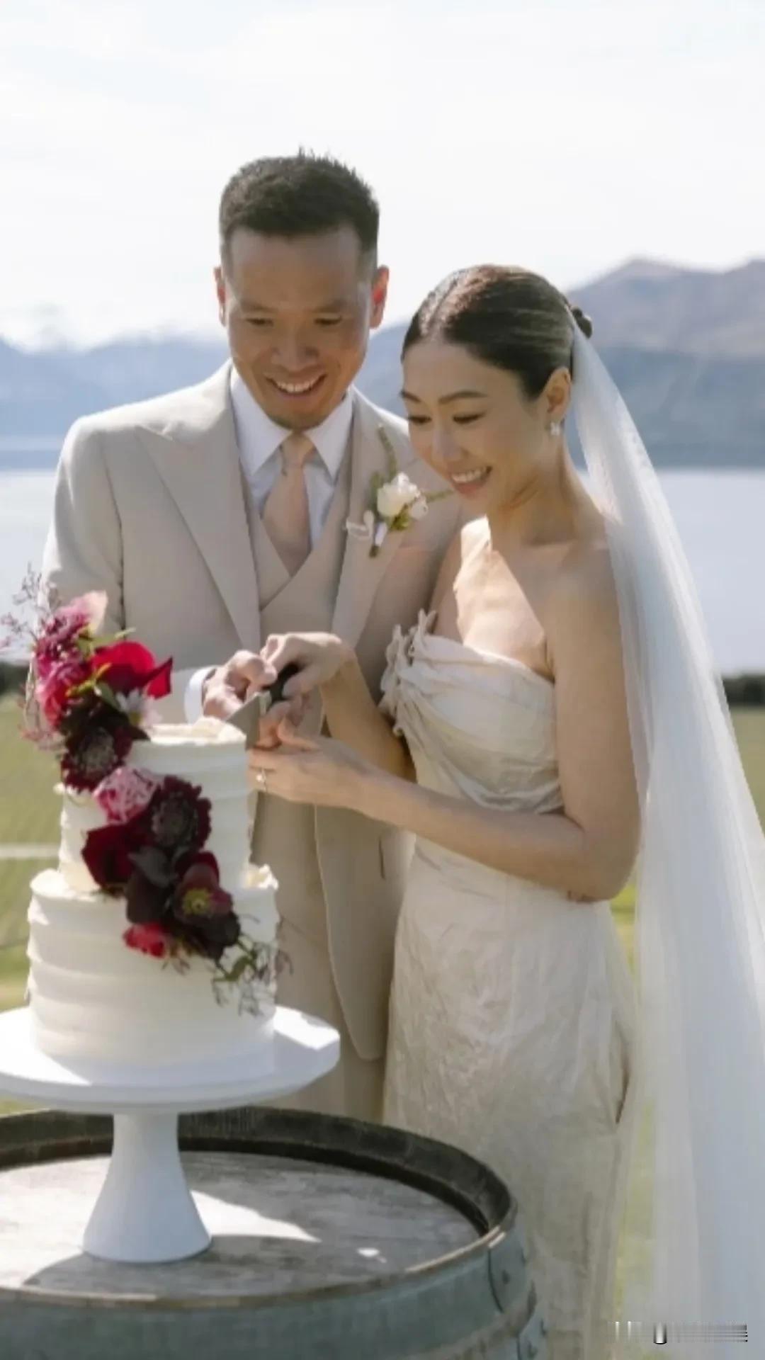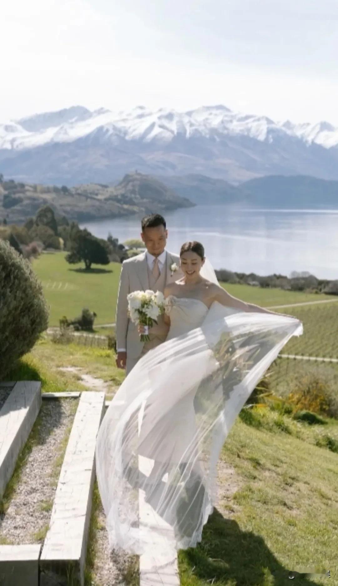 44岁的TVB当家花旦胡定欣官宣结婚照,恭喜啊! 照片中的胡定欣身穿白色婚纱,身