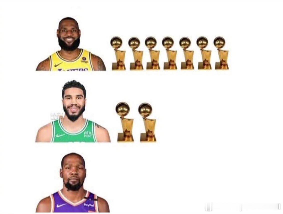 詹姆斯球迷主页用全新的视觉分析詹姆斯、塔图姆和杜兰特的生涯成就:“如果NBA没有库里”