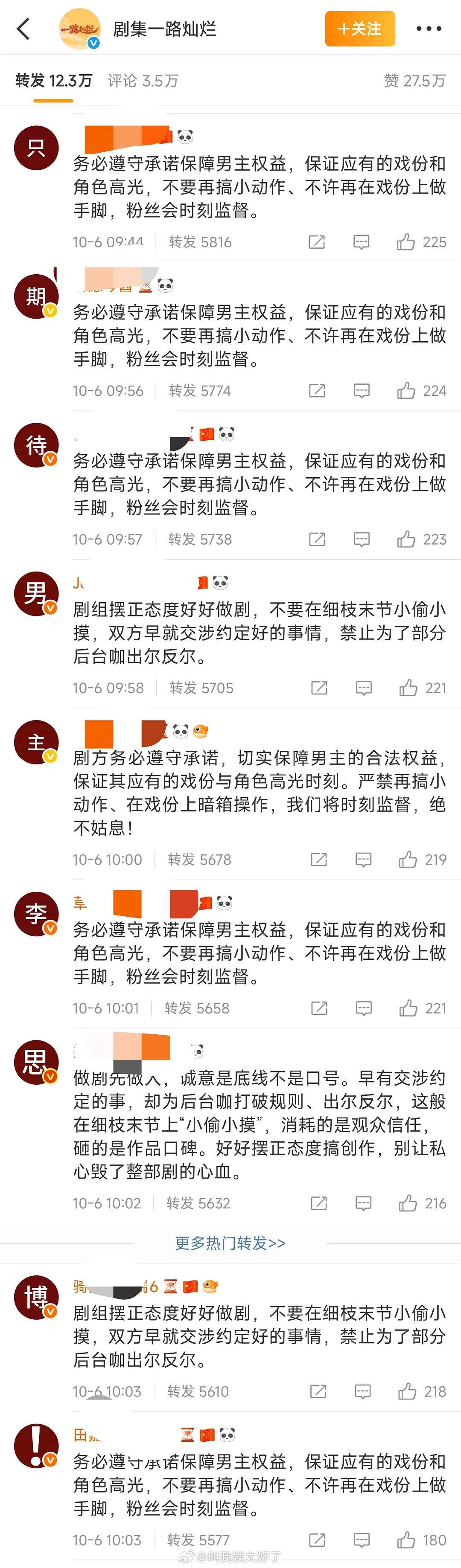 《一路灿烂》男主田嘉瑞粉丝给剧组排字了,这部剧是女性群像剧吧?[融化]
