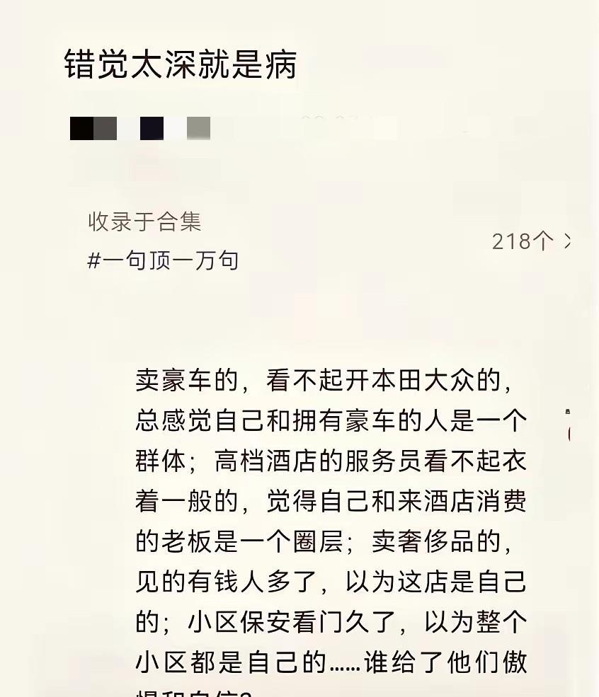跟绑大闸蟹的稻草同理, 见多了觉得自己也是了, 就觉得自己也高人一等。