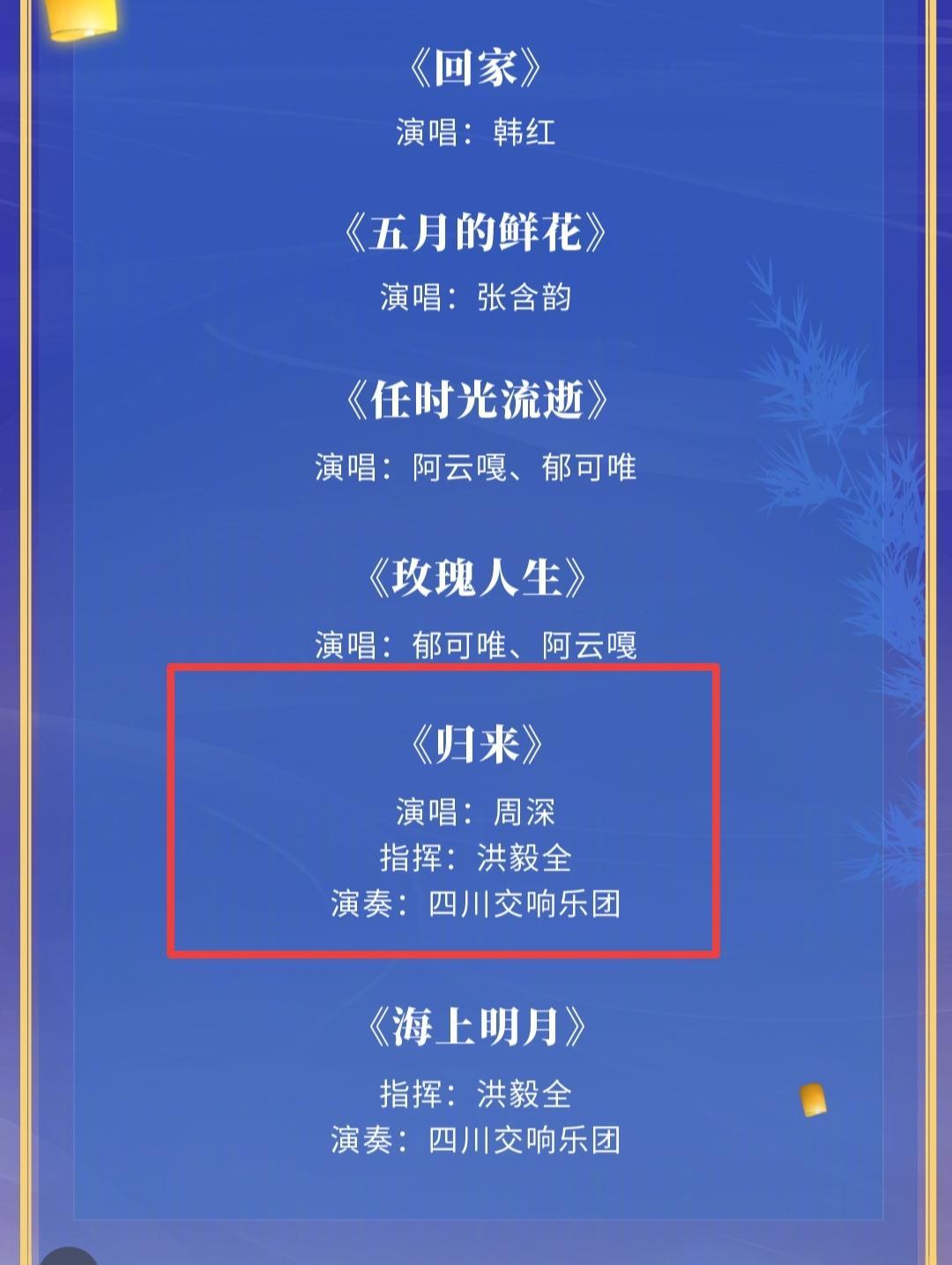 央视,湖南中秋晚会节目单来了! 周深央视中秋晚会将演唱《归来》,四川交响乐队演奏