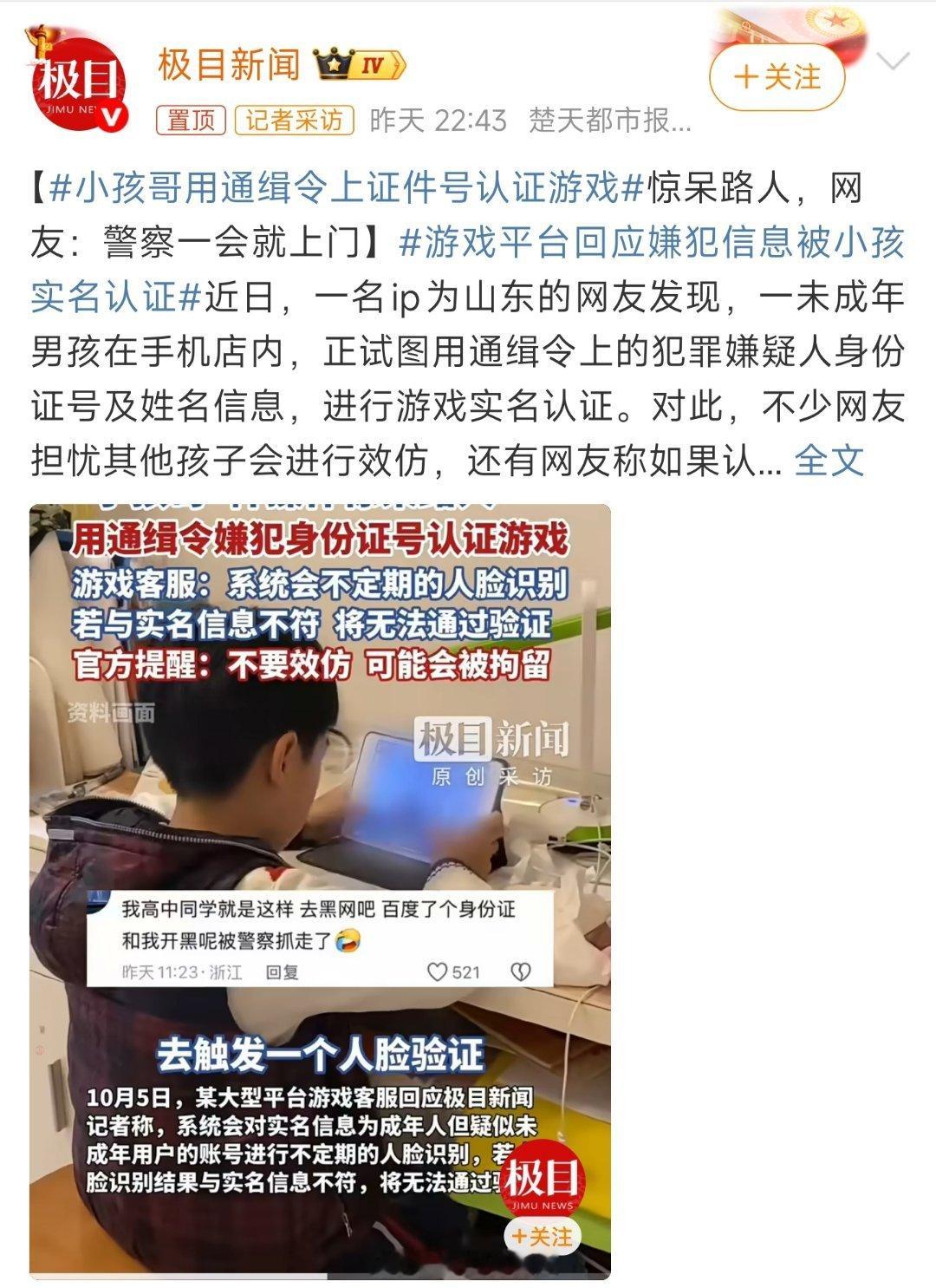 小孩用通缉令号认证这事,可不光是脑洞开得大,关键是他压根没弄明白,这么干其实是违法的!