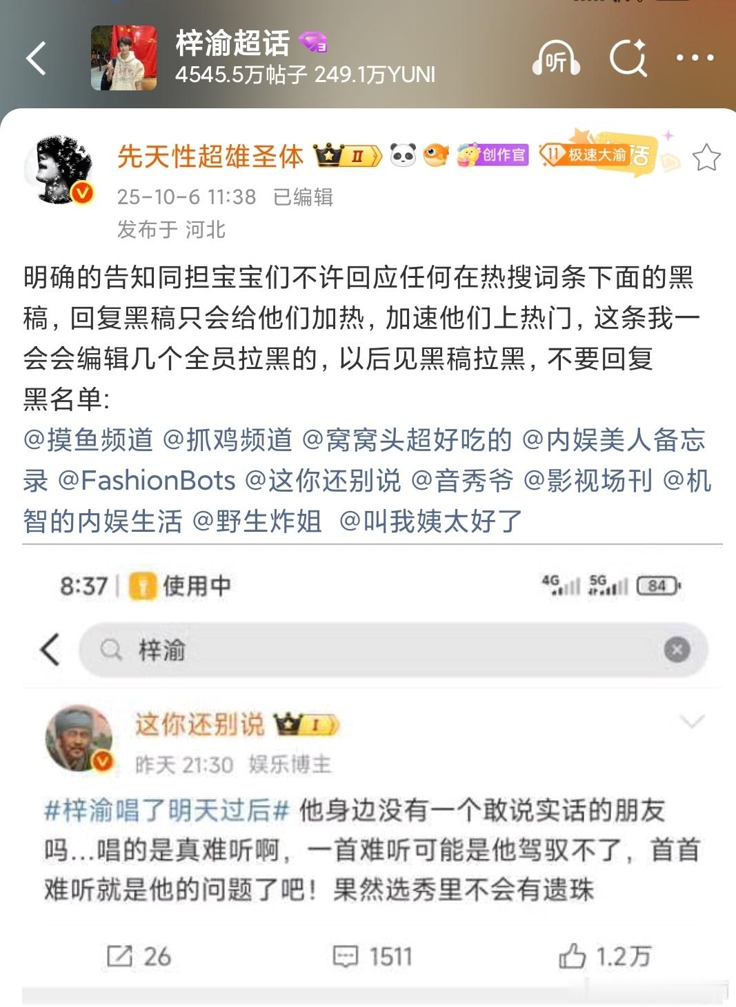 黑稿博主,总结名单直接拉黑是对的。
