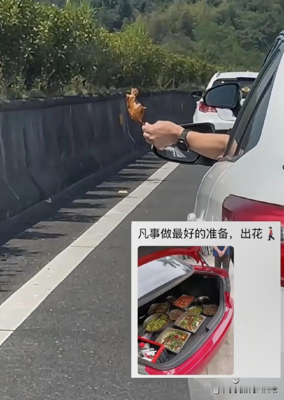 国庆堵车气人啊,大哥车啃鸭腿 国庆高速堵车界,这位啃鸭腿的大哥算是把“拉仇恨”玩明白了!别人在车阵里饿到眼冒金星,他优哉游哉伸出车窗炫美食,把后车姑娘气得直跺脚:“这不是故意的是啥!” 他凡尔赛没底线,可转头就被“后备箱厨房”的骚操作打脸——现在堵车界,没点硬核干粮都不好意思上高速!你说这是拉仇恨还是生存智慧? 但话又说回来,堵在高速上啃着鸭腿看别人干瞪眼,这波操作到底该夸会过日子,还是该diss没分寸?