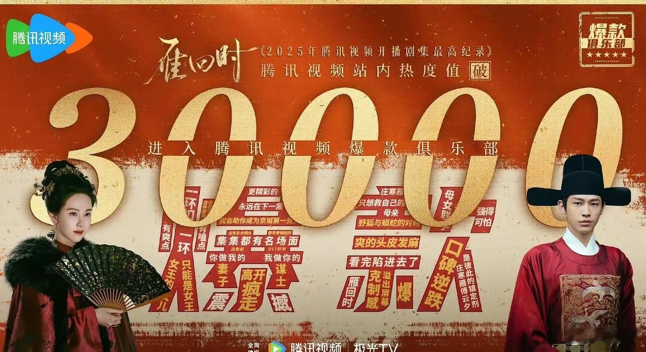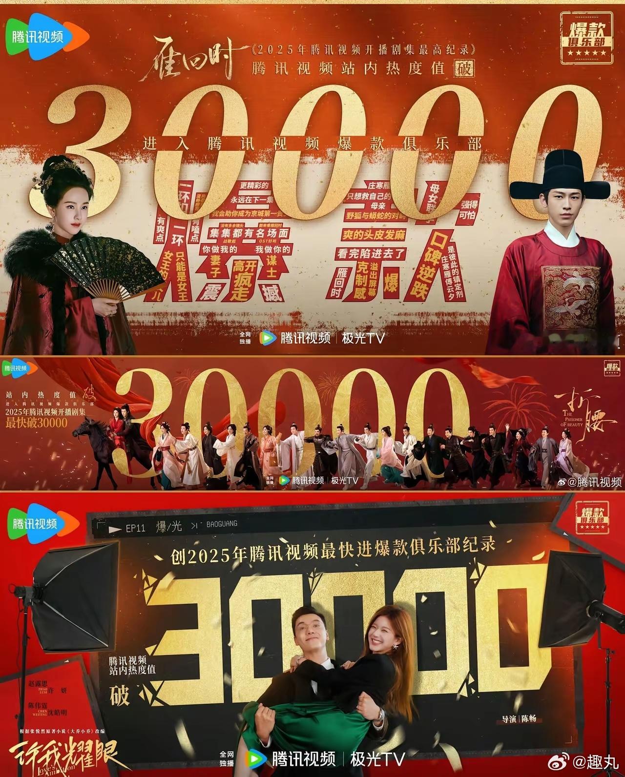 鹅厂2025年破3w热度的电视剧目前只有4部: