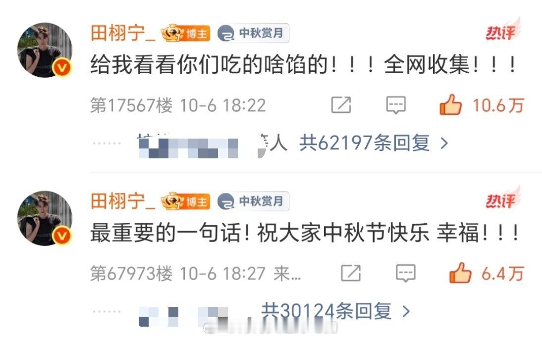 田栩宁中秋营业,问大家吃的什么馅的月饼🥹