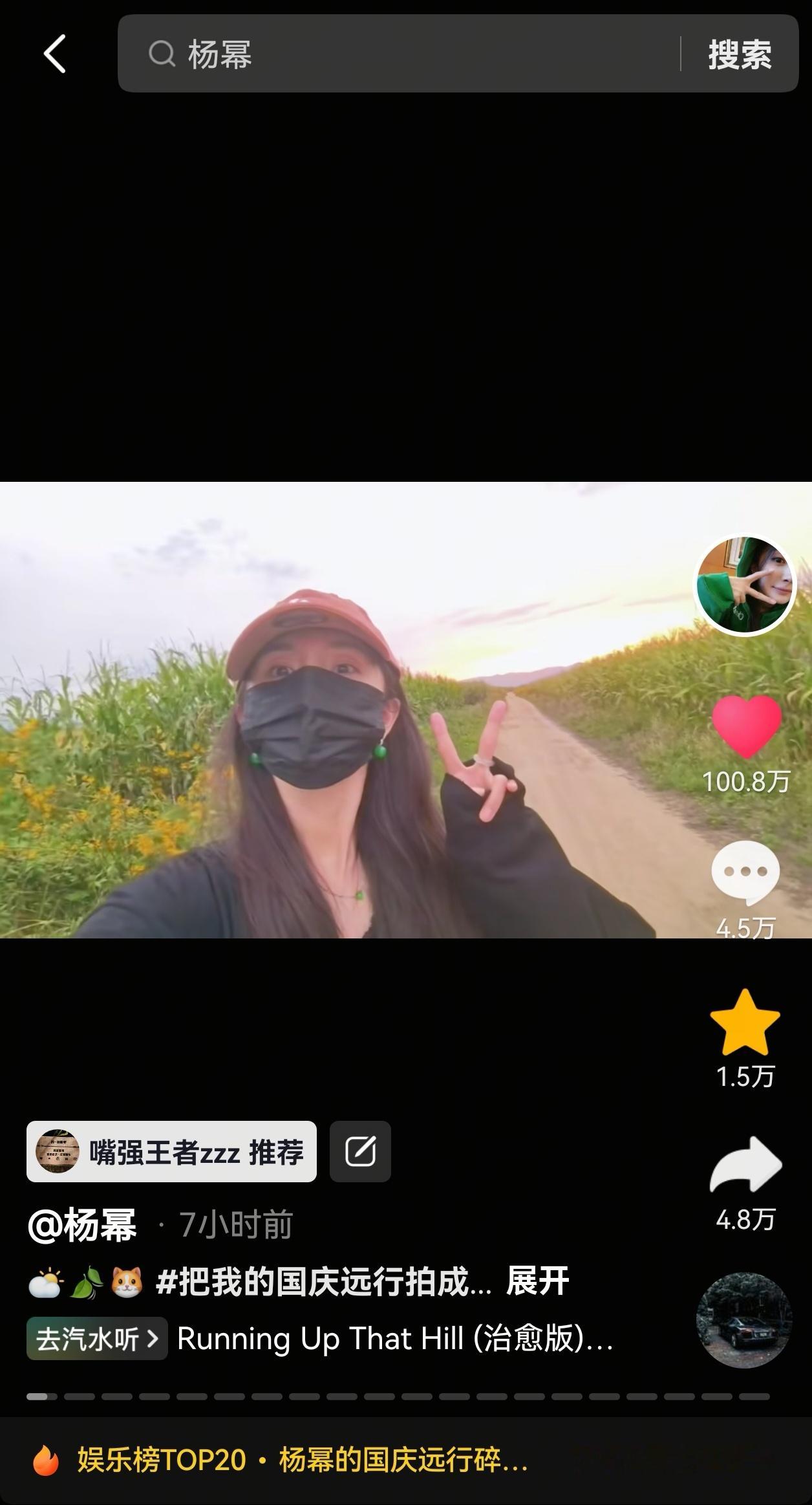杨幂中秋营业视频dy点赞破百万啦!大家都喜欢看美女晒日常[手指比心]