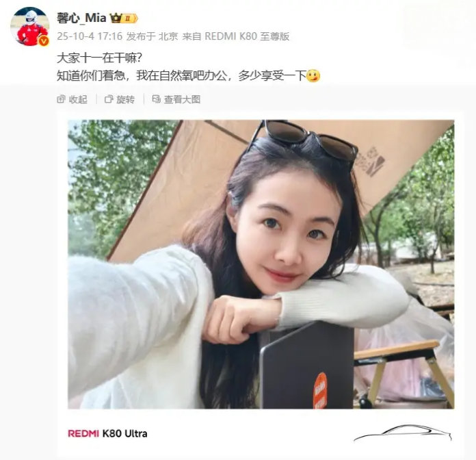 其相关的配置信息正逐步浮出水面,目前新机跑分已曝光,标准版将搭载高通骁龙 8 至尊版芯片。红米 REDMI 产品经理胡馨心在微博分享了自己的行程,透露正在自然氧吧办公。