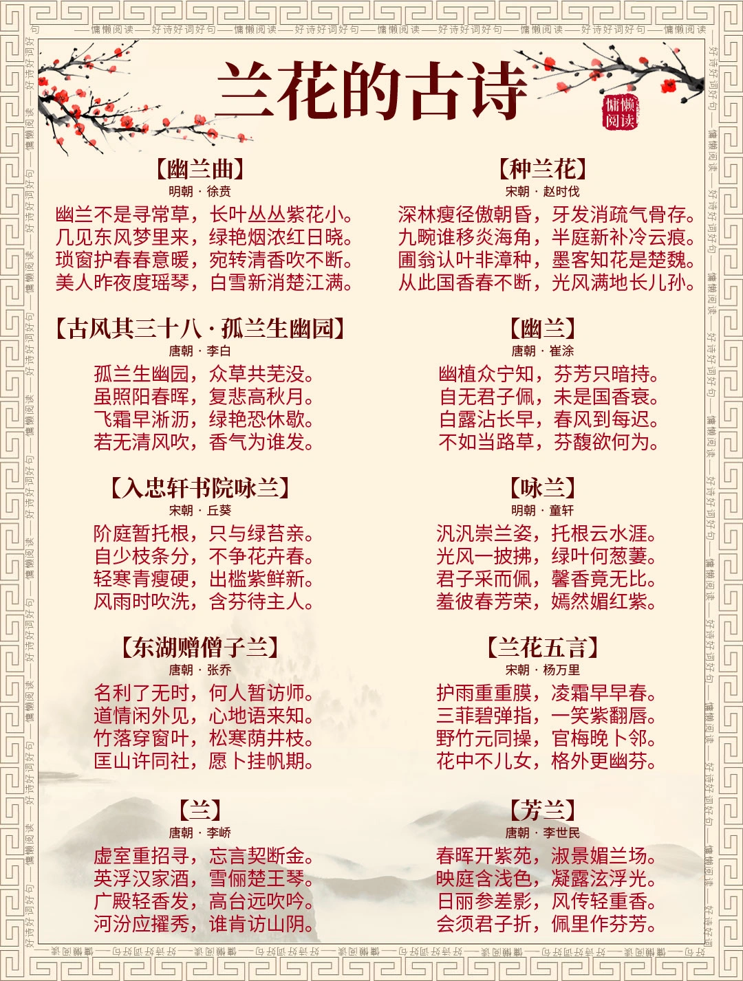 古诗 唐诗 诗词 兰花 我心中的绝佳诗词 惊艳千年的古诗词 古诗词积累 让孩子爱上古诗词