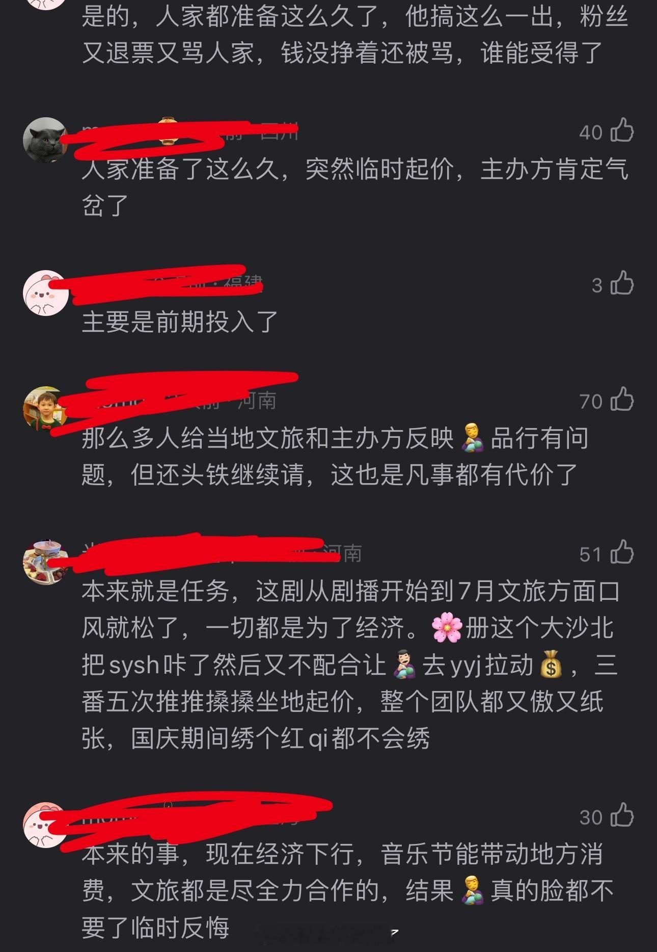 有网友说田栩宁音乐节的事最愤怒的其实不是主办方而是当地的部门,人家准备这么久了,