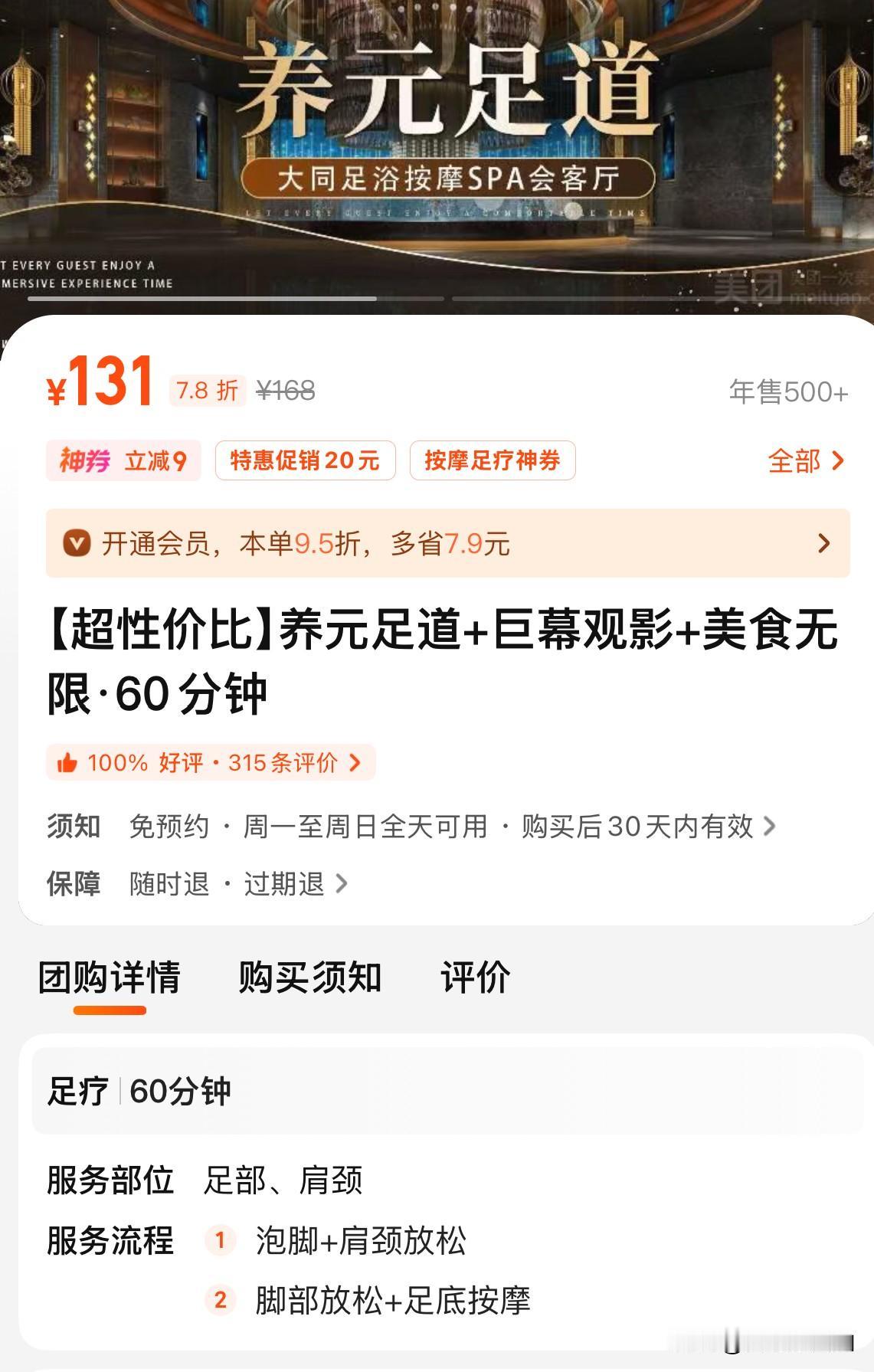 100的足疗算便宜吗?为啥不给做! 国庆旅行,从陕西到山西,暴走了四天,每天三万步,脚和腿实在是酸疼得受不了。 今天到了终点站大同,逛完云冈石窟和大同古城,感觉已经到极限了。 吃完著名的大同刀削面,才晚上七点多,而我回程的火车票是晚上十一点的。 看着还有好几个小时要打发,加上浑身疲惫,我就想找个地方好好按按脚。 于是在美团上搜了一下,发现火车站附近几百米就有一家店,看着图片店很气派,很正规,团购价100块钱,感觉挺划算,就决定过去看看。 结果到了那里,很尴尬,先是两个穿着黑色套装和短裙的姑娘迎上来,接着还有人从一个灯光很暗的小房间里走出来。 偷偷瞄了一眼,裙子都要盖不住屁股了,还大象腿,浓妆…… 她们直接告诉我,那个100块的团购项目现在“做不了”,理由是国庆节人多,JS不够。然后就开始极力向我推荐其他更贵的套餐。 我一看这氛围和套路,感觉不太对劲,和我想要的纯粹按摩不一样。我就是想找个正规地方,老老实实洗个脚、按个摩,缓解一下疲劳而已。 所以,我什么都没说,果断转身离开了。 想问问懂行的朋友们,这种情况是真的因为国庆期间JS忙不过来,还是说这种便宜的团购套餐本身就是一个诱饵,目的就是先把人骗过去,再推销其他可能带有灰色地带的服务? 我只是想简单按个脚,怎么就这么难呢……
