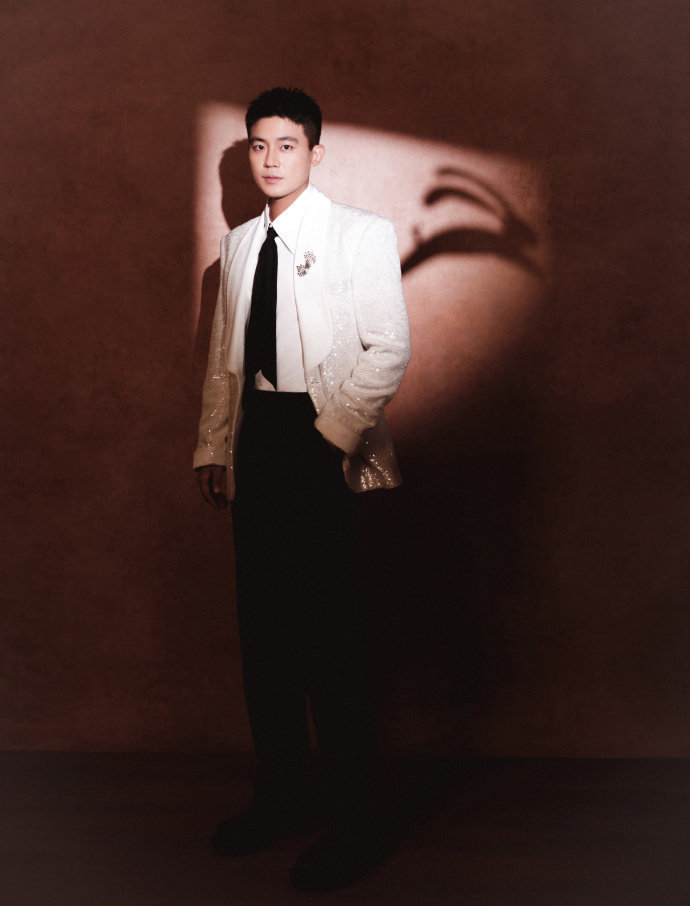 欧豪鳞片西装一闪一闪又一闪谁被欧豪秋晚造型戳中了?白色鳞片西装在舞台上超有氛