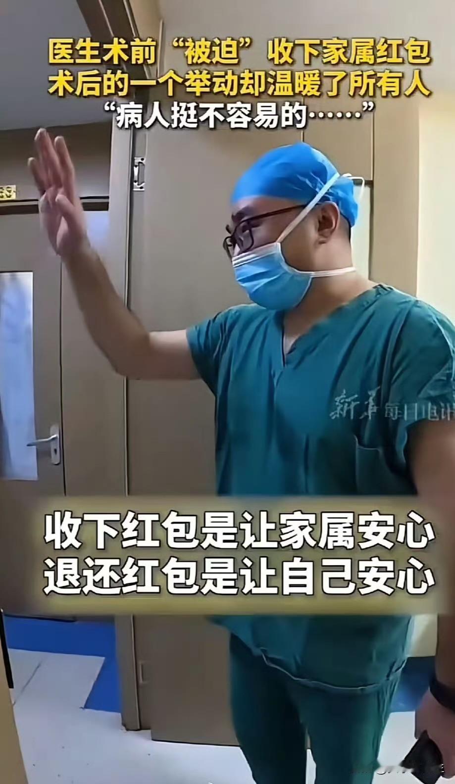 北京朝阳医院骨科赵会医生最近做了件事。 患者家属塞给他一个黑塑料袋,里面装着一万块钱。家属是从外地来的,家里有人得了糖尿病足,手术前心里不踏实,总觉得不送红包医生不会尽心。赵会医生没推辞,收下了。 他拿着钱去了住院缴费处,让工作人员把这一万块充到患者的住院账户里。手术做完后,他才把缴费收据递给家属。家属看到单子,眼泪当时就下来了。 赵医生后来解释,收下红包是为了让家属安心,退回去是为了让自己心安。这种处理方式在医院里并不少见,有的医生遇到坚决要送的红包,会先暂时收下再转为患者的住院预缴金,有的医院还有规定,无法当场退回的红包需在24小时内上交入患者账户。 病人送红包,往往是图个心理安慰。尤其是从外地到大医院看病,人生地不熟,总担心不被重视。医生收下再悄悄退还,既照顾了家属情绪,也守住了底线。赵会医生所在的足踝专业团队,本身技术过硬,开展过3D打印踝关节置换这类先进技术。 这件事让人想到,好的医患关系其实很简单。医生尽责,患者信任,比什么红包都强。