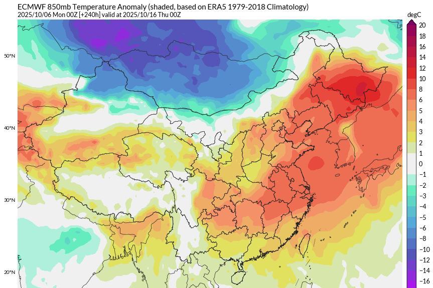 10月中旬的冷空气又开始往后调了,现在看来16号之前北方的冷空气都没法南下,最多影响到淮河以北地区,淮河以南仍旧是副热带高压的活动地盘。这股冷空气从有信号开始就一直往后调,最先预报12号南下,随后调到15号,现在看已经有放鸽子的可能了,因为中纬度西风带相当平直,这种形势并不利于冷空气南下。而反观副高则是快要成仙了,10月中旬和8月中旬一样强,未来江南中东部、华南东部的高温天气可能还要持续一周以上,真的是史无前例。