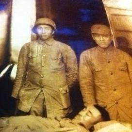 这不是剧照,而是杨杰副旅长牺牲后,部下给他拍下的最后一张照片,他的遗体放在门板上