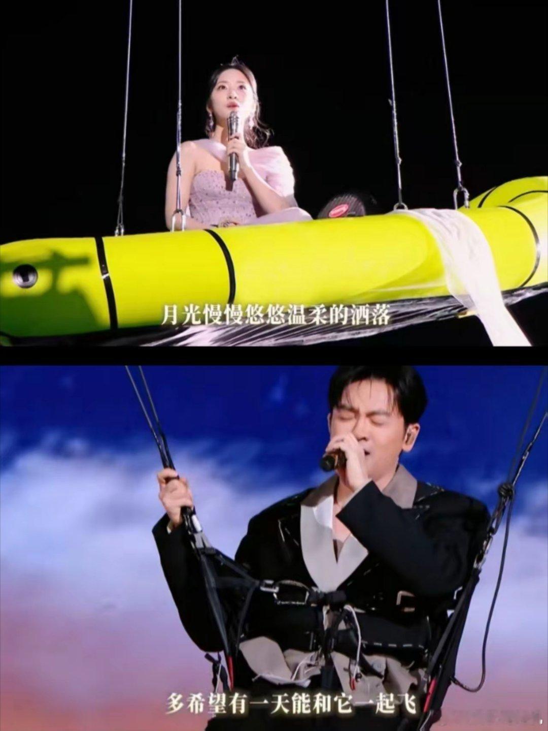 不信你看,沈月她与魏哲鸣合唱《月亮翻过小山坡》时,她坐在月亮般的小船里温柔合唱,动都不敢动一下。