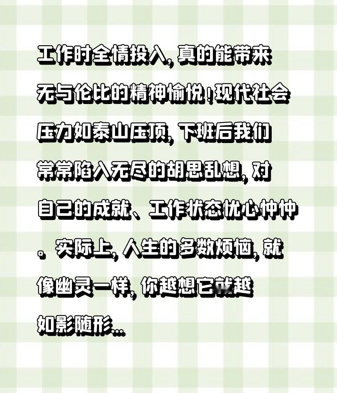 工作时全情投入,真的能带来无与伦比的精神愉悦!现代社会压力如泰山压顶,下班后我们