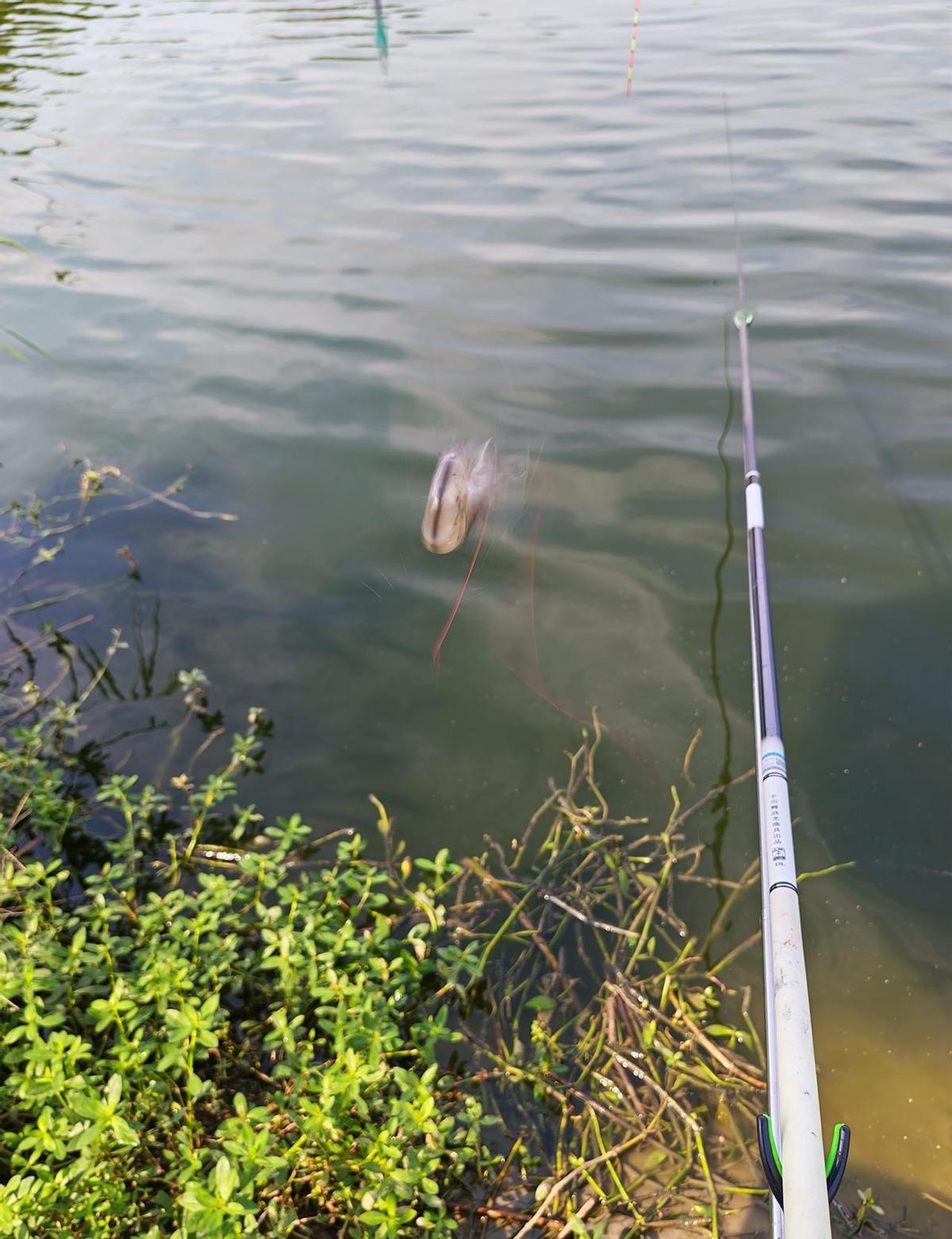 虾塘没鲫鱼,全是鮰鱼在炸窝。 你以为是来钓鲫鱼,结果一竿下去,子线直接断成两截。