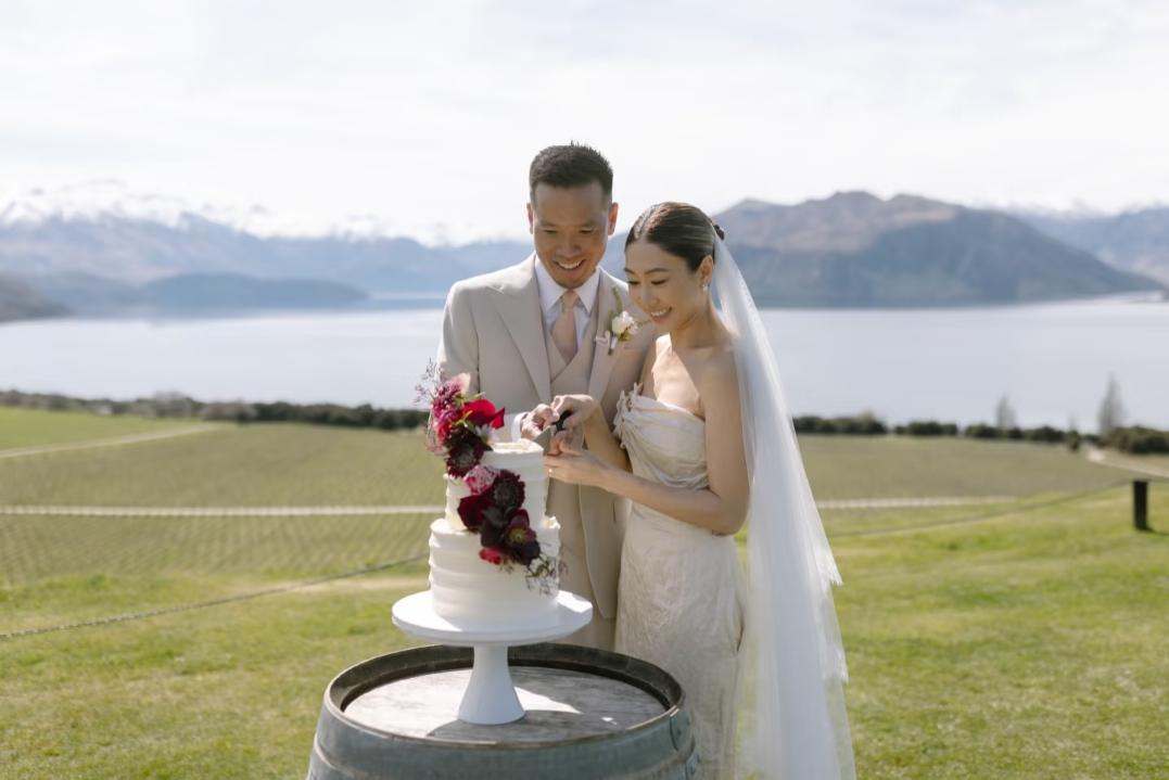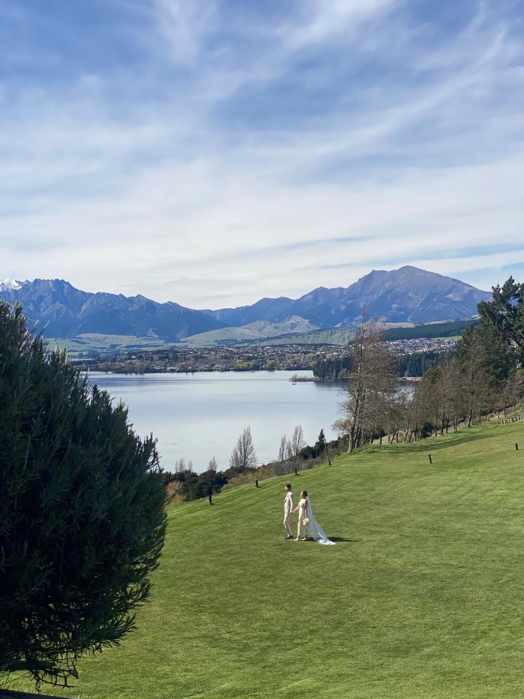 胡定欣官宣结婚了!她在新西兰办婚礼,场地看着很大很漂亮,胡定欣穿着白色婚纱,她双