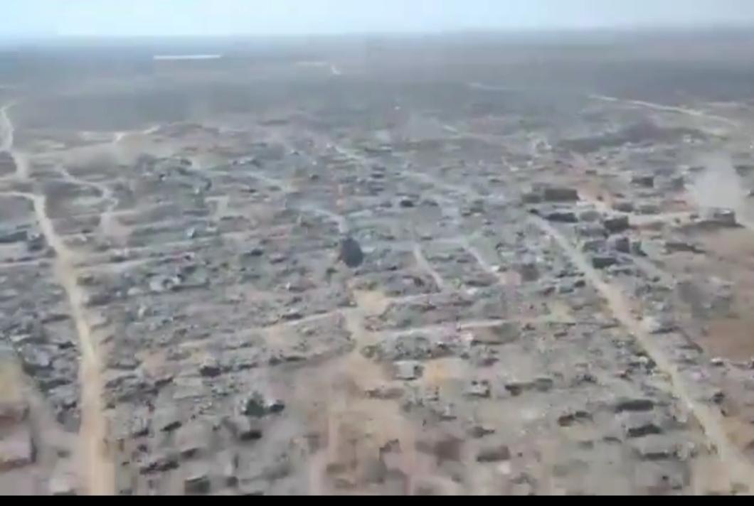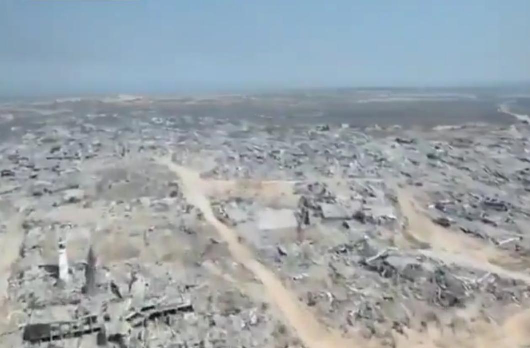 无人机拍摄的今日加沙城 整个加沙几乎是一废墟,没有一幢建筑是完好的。两年前加沙城还是一座生机勃勃的城市,今天已面目全非。 战争是残酷的!