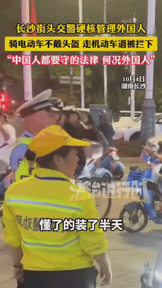 湖南长沙交警叔叔教育老外火了, 一对外籍情侣骑电动车未戴头盔被交警拦下,疑似打算去小吃街,却装听不懂中文、全程沉默抗拒执法。 路过大学生用翻译软件帮忙沟通,仍不见效,交警见状戳穿他们的伪装,大声普法:“到中国就要守中国的法,骑电动车戴头盔、不要走机动车道,明白吗?” 此时交警又说了一句,“中国人自己都要守中国的法律,何况你一个外国人”,这句话一说出来周边群众竖起了大拇指,真的是太给力了,给咱们中国人长了脸。 法律面前人人平等,中国的规矩不分中外,交警的硬气既维护了法规尊严,也让人直呼提气。 我不歧视外国人,只是不知道那些外国人哪来的优越感?在我国就得遵守我国的法律,任何人都不能越过红线。我们自己都在遵守,何况你一个外国人!太提气了!