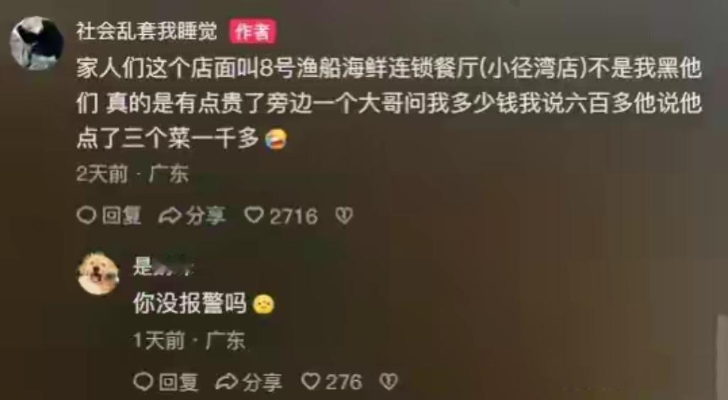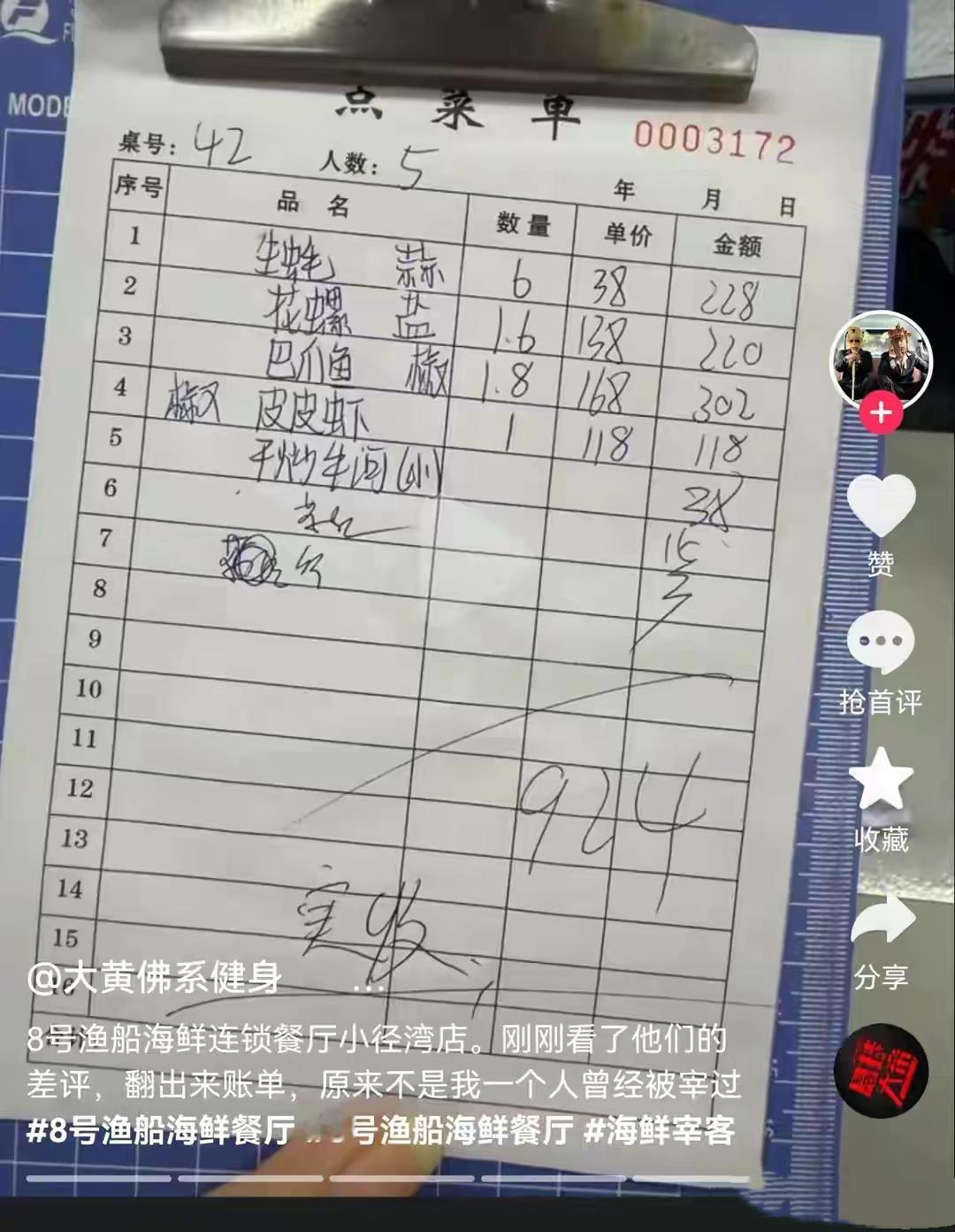 太狠了! 男子带家人到广东惠州“小径湾”旅游,遭遇了海鲜餐厅宰客,两个菜竟消费6