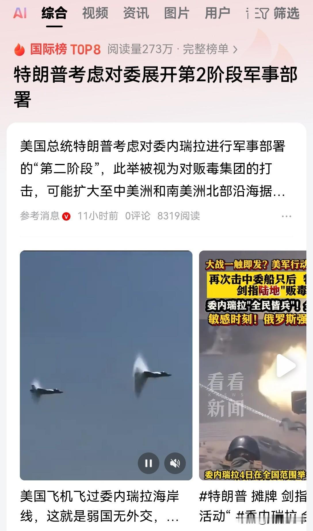 在特朗普的心目中,委内瑞拉的军事优先权应该大于伊朗。 特朗普的任务应该是攘外必先安内,他还是想把家门口和美国内部收拾干净了之后,再帮助以色列攻打伊朗! 这个就是特朗普的先后次序! 近日,特朗普对媒体表示,他正在考虑对委内瑞拉进行军事部署的第二阶段。 他将更加深入地打击贩毒集团。 西班牙阿贝赛报5号报道称,特朗普正在考虑对委内瑞拉开展第2步军事部署。 特朗普表示之前他通过一系列对毒贩船只的打击,已经获得了委内瑞拉的制海权。 下一步,美军将研究如何打击委内瑞拉国内的毒品物流枢纽。 也就是说美军下一步很有可能直接轰炸委内瑞拉的国土。 战火将从领海一直延续到内陆。 那么为什么是西班牙媒体率先报道这个消息的呢? 那是因为特朗普在访问弗吉尼亚海军基地的时候。 西班牙的记者率先问到了这个问题。 特朗普在回答西班牙记者提问的时候,阐述了以上的观点! 现在看来,下一步美军的目标应该就是委内瑞拉的港口,还有他们所认为的贩毒物流枢纽了! 大家看明白了吧?这就是打着禁毒战争的旗号,准备直接轰炸委内瑞拉的军事目标啊! 至于说美国战争先后次序的问题,之前心净已经回答过大家这个问题! 特朗普肯定是优先于先打委内瑞拉的。 而内塔尼亚胡肯定是希望美国先打伊朗。 这两个国家的诉求是不一样的! 咱们后面就看看到底会听谁的吧!