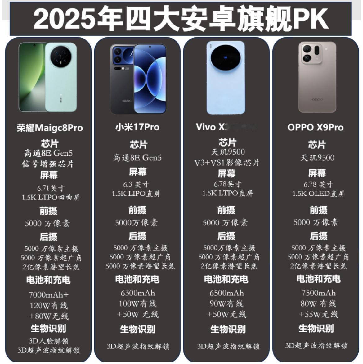 去了一家国产手机厂商的旗舰店,这欢迎程度不亚于苹果的新品开售,国产手机也是站起来了 荣耀阿尔法全球旗舰店开业,现场真是人山人海,荣耀的李健也是曝光了很多荣耀Magic8的信息:“AI体验、影像、性能碾压任何一家!”,看了2025年四大安卓旗舰机的对比,荣耀Magic8 Pro确实在性能、影像以及充电续航等方面具有较大的优势。 至于AI性能,一直是荣耀Magic系列的卖点,可以一句话点外卖、打车,还能语音搜索照片、一句话跨设备传送等。Magic8系列预计10月中旬发布。
