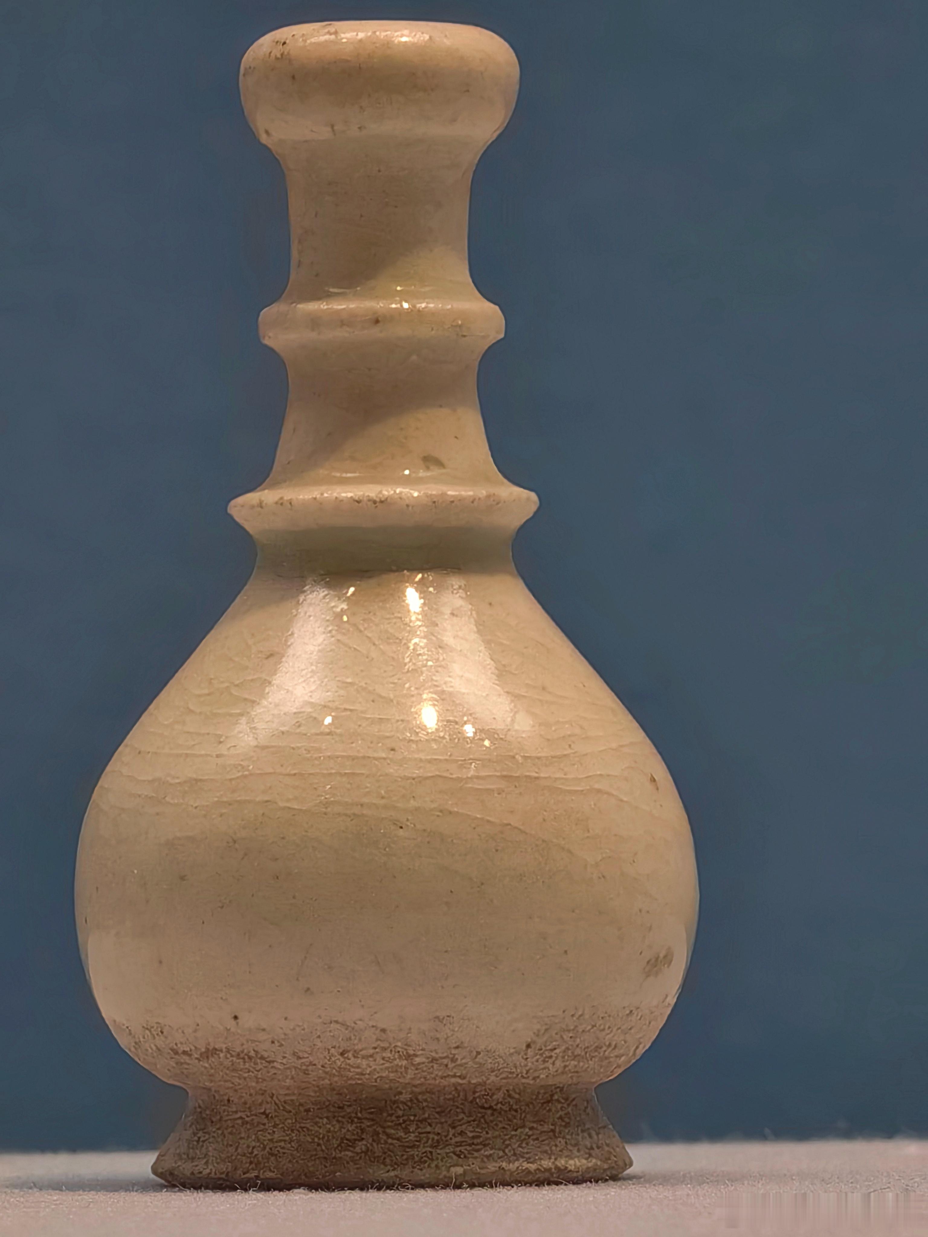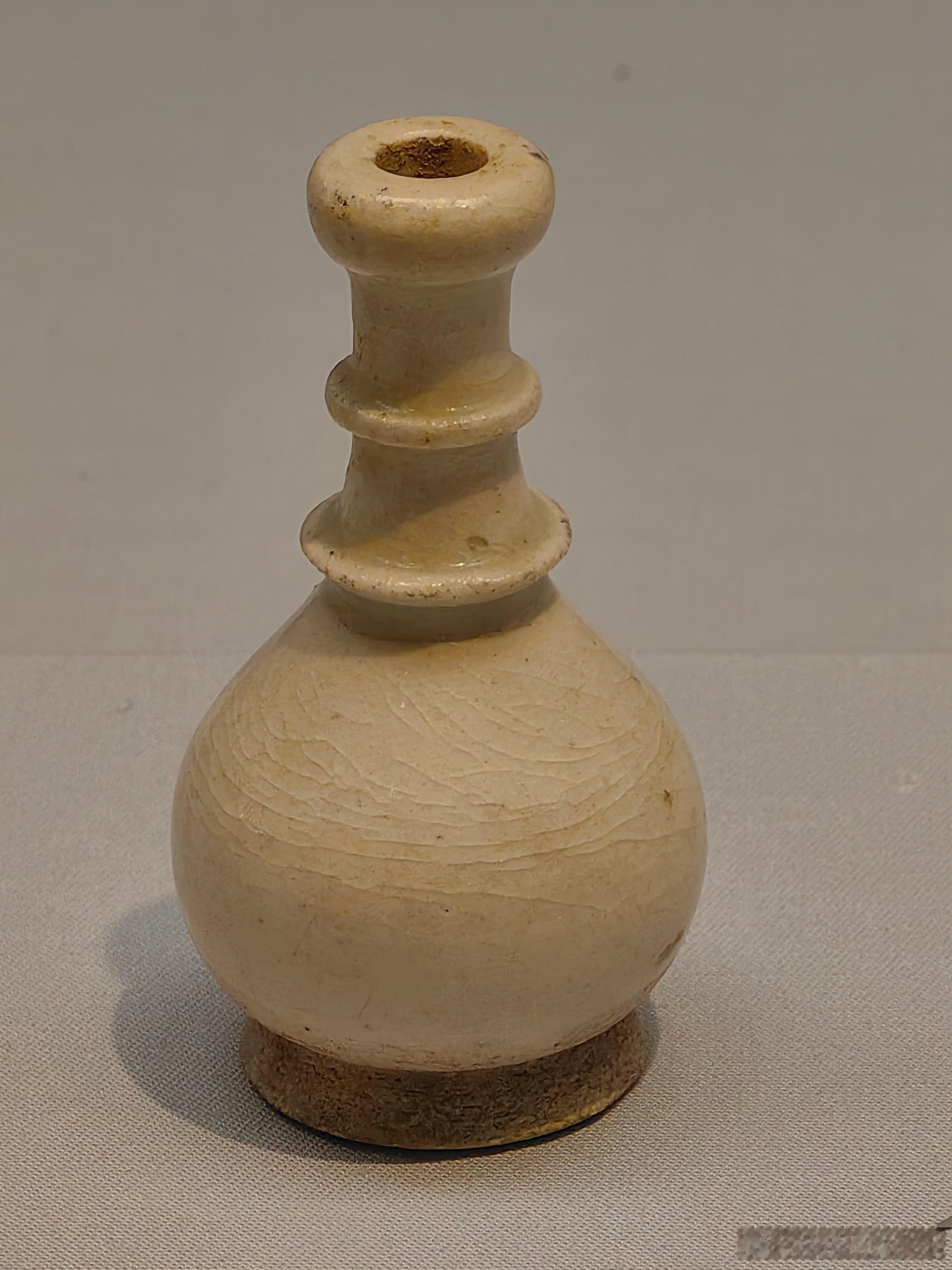 1956年陕西西安李静训墓出土。隋代白瓷在继承北朝工艺技术的基础上,又有长足的进步。从李静训墓出土的白瓷来看,已不见早期白瓷釉色中闪黄或闪青的现象,说明釉质显著提高。