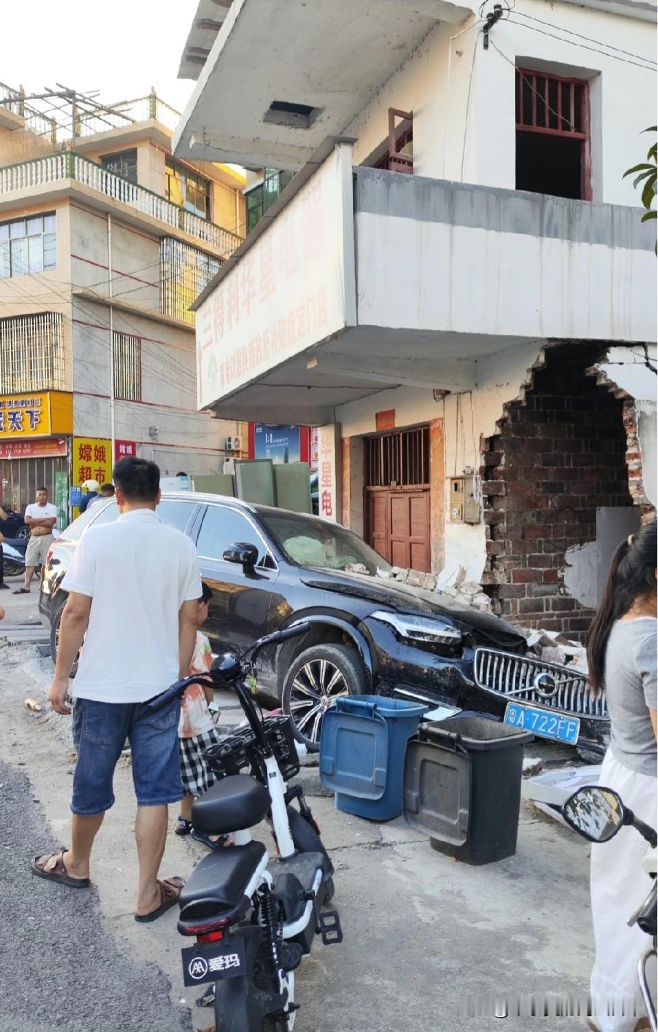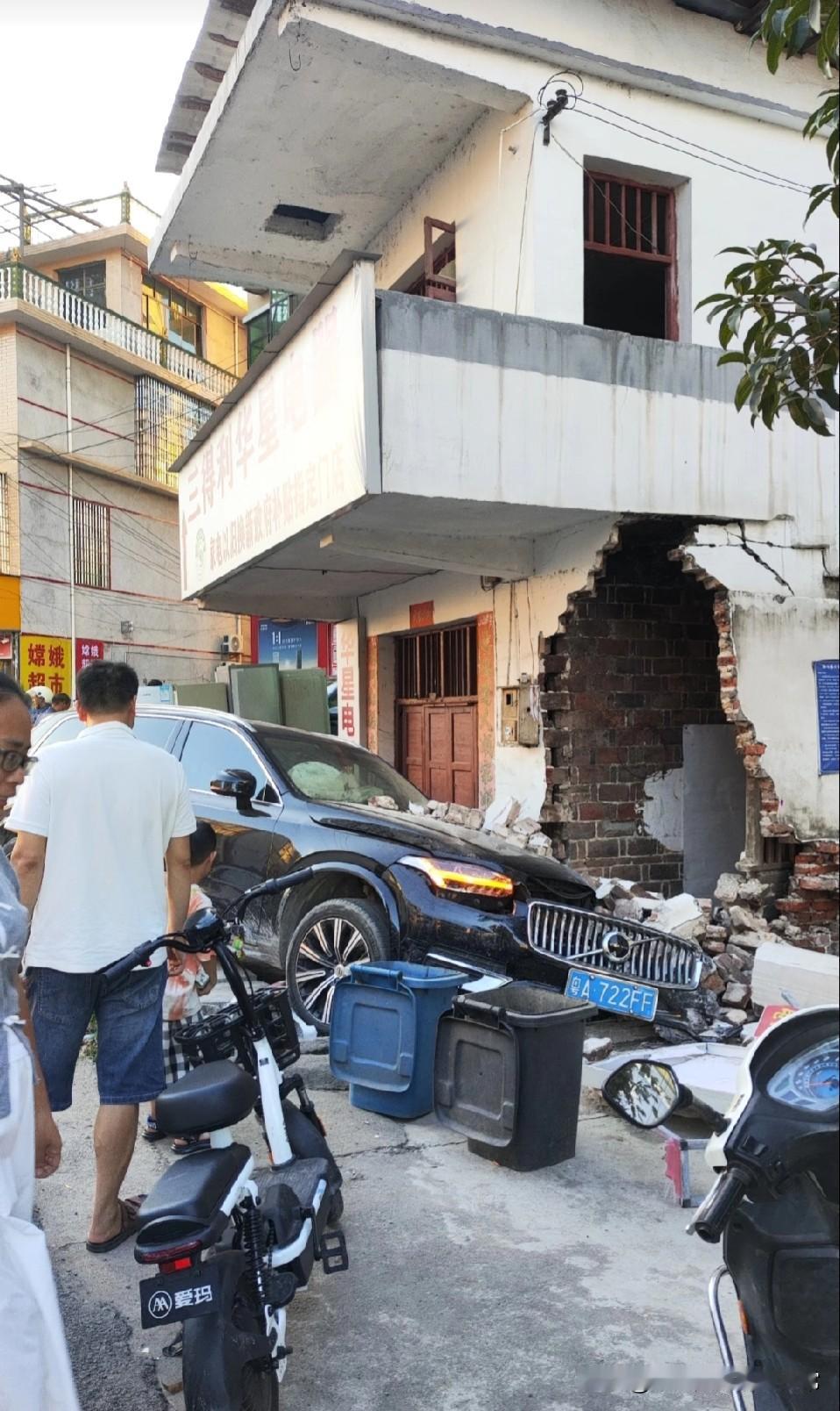 车主还走的了吗! 在老家拍的,粤A 车主冲到厨房里来了 国庆节在老家探亲🤫, 路过湖南新化这边的一个集市。 看到一个广州的车冲到人家家里去了, 好像是厨房还是卫生间, 还好没有人员伤亡事故,🙏🙏🙏 车的质量也很👌,不愧是欧洲安全很高的车。