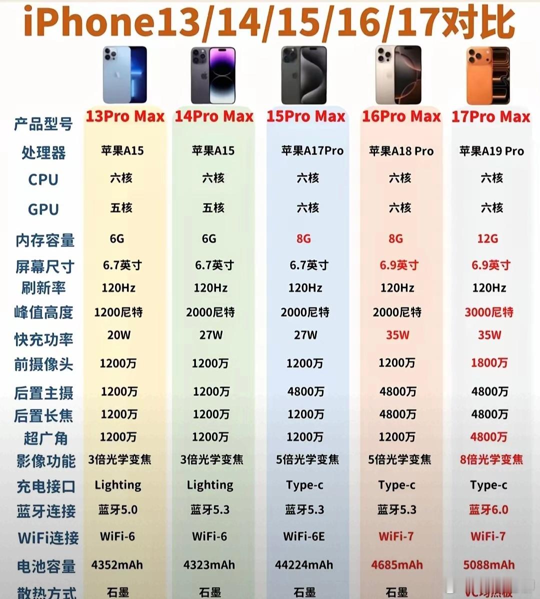 iPhone13系列到iPhone17系列对比!看看这些年苹果做了些什么…​​