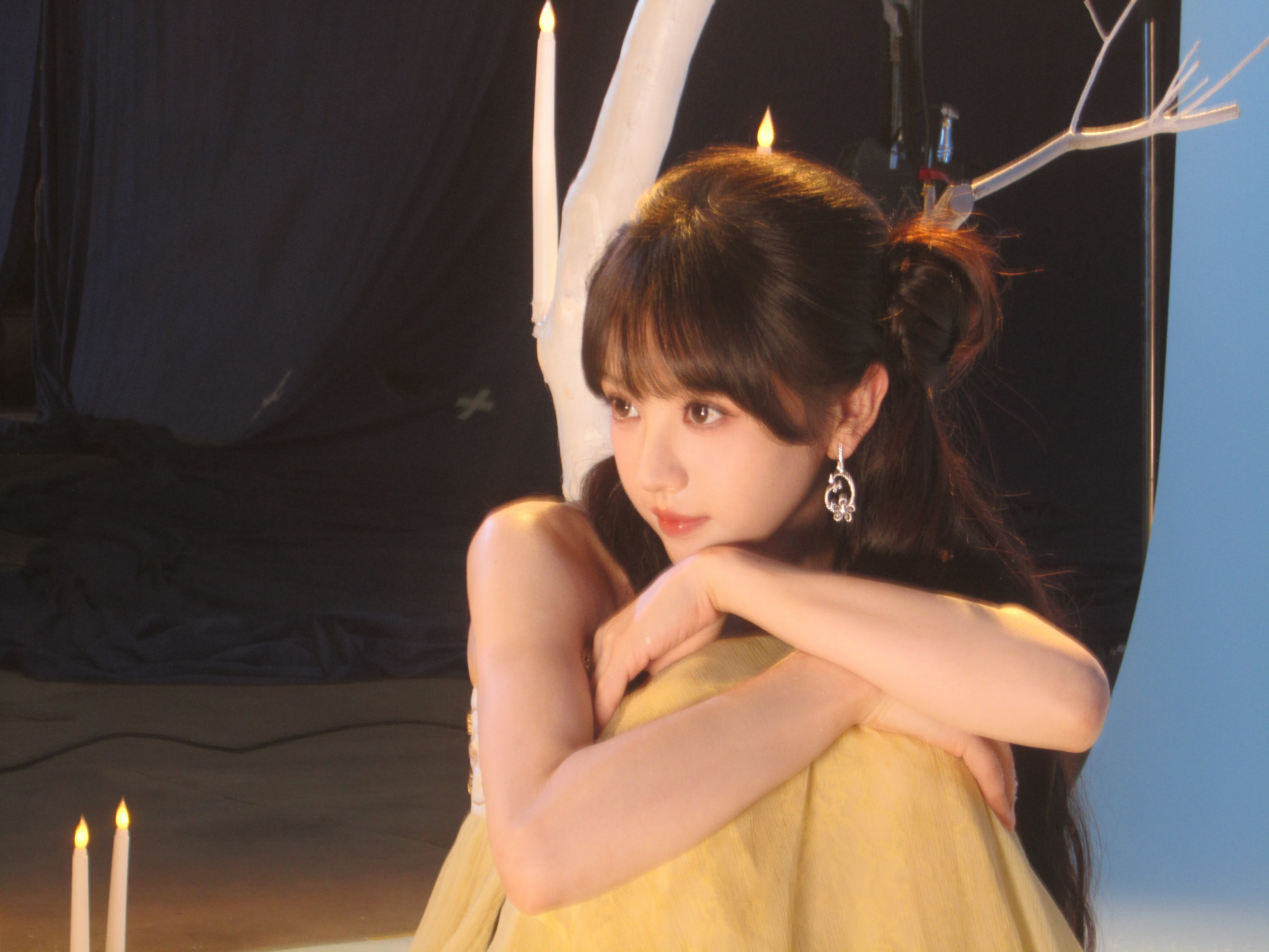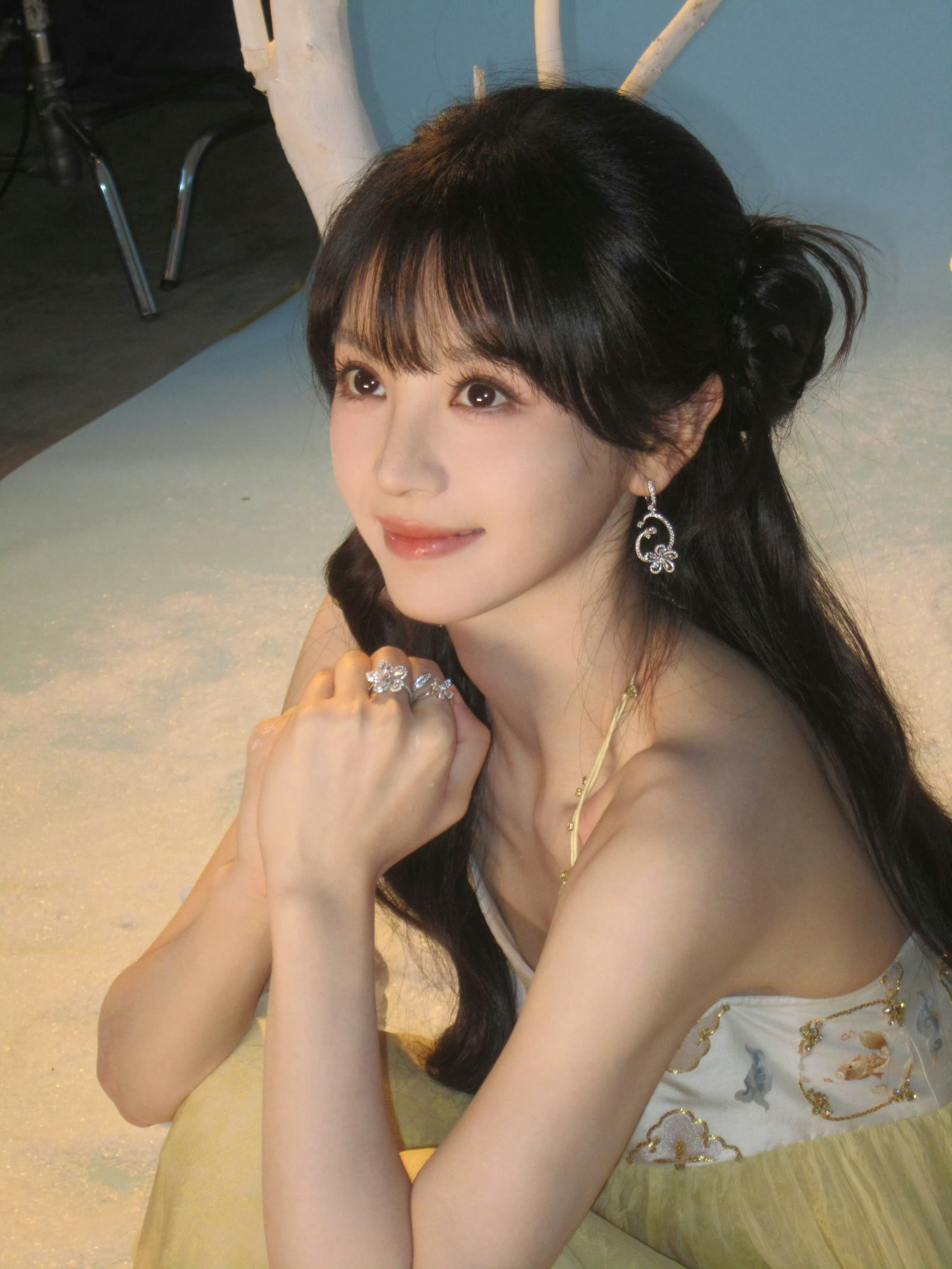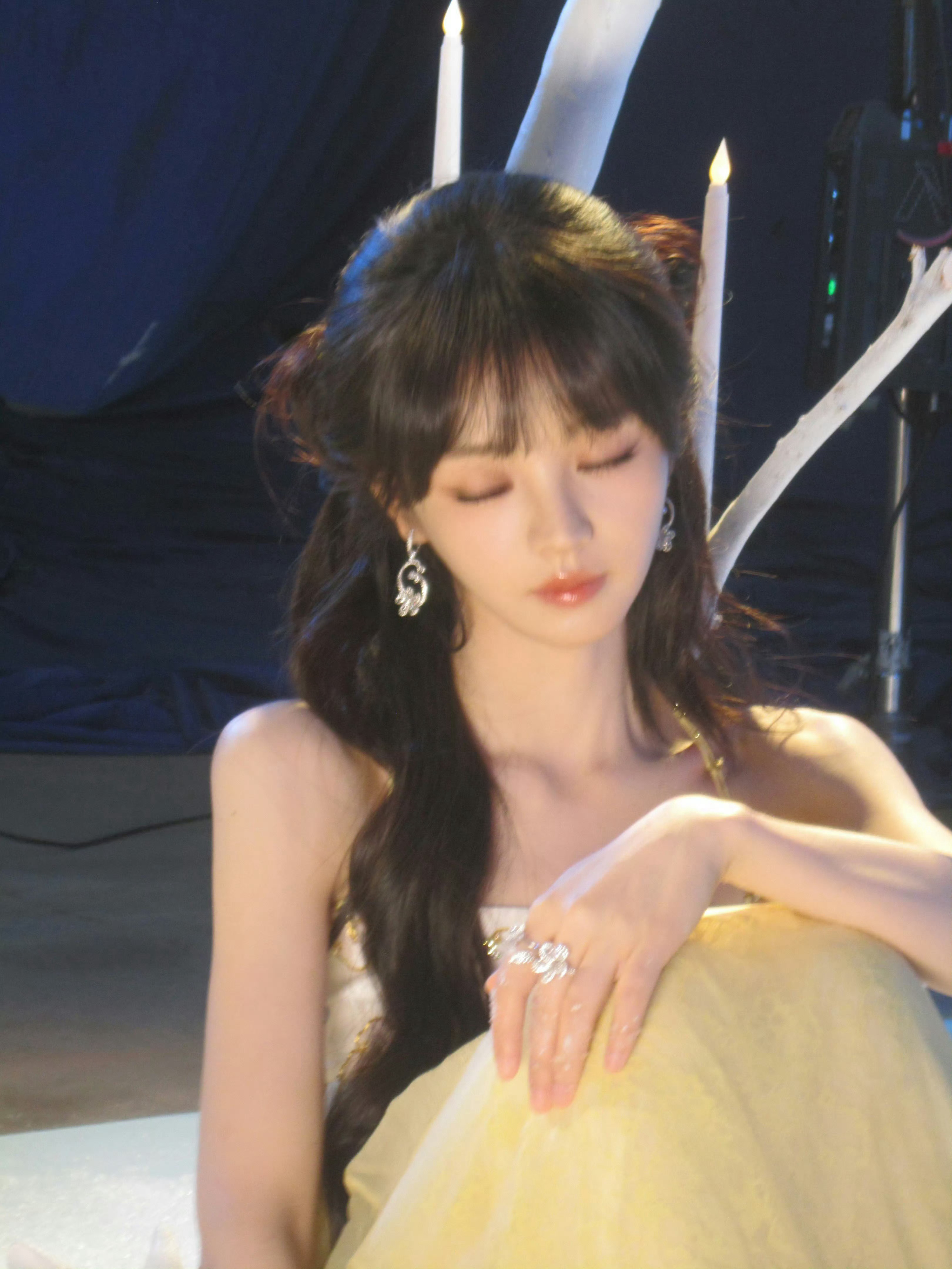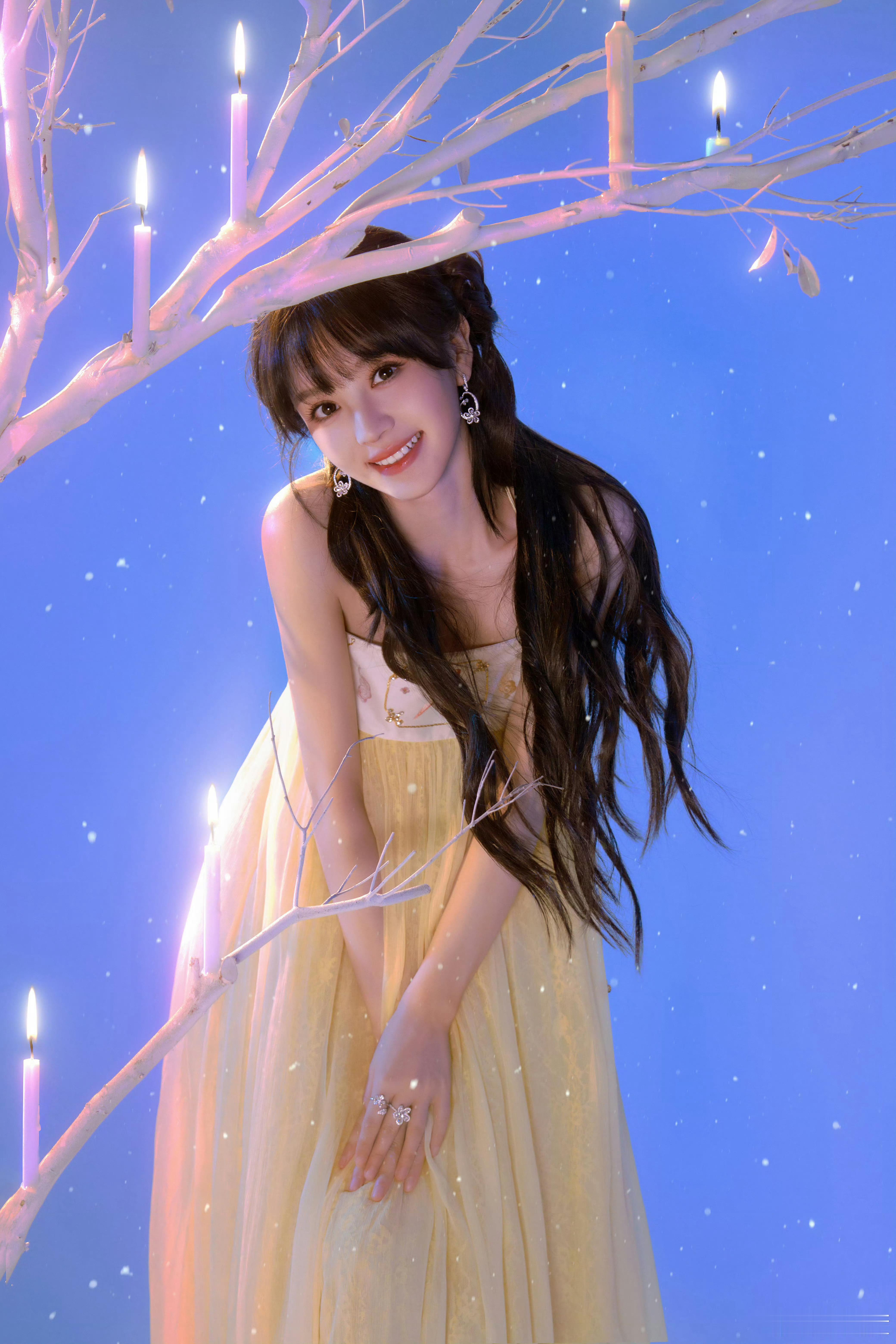 田曦薇 x 中秋营业照[爱慕]田曦薇鹅黄吊带襦裙txw田曦薇玉兔塑