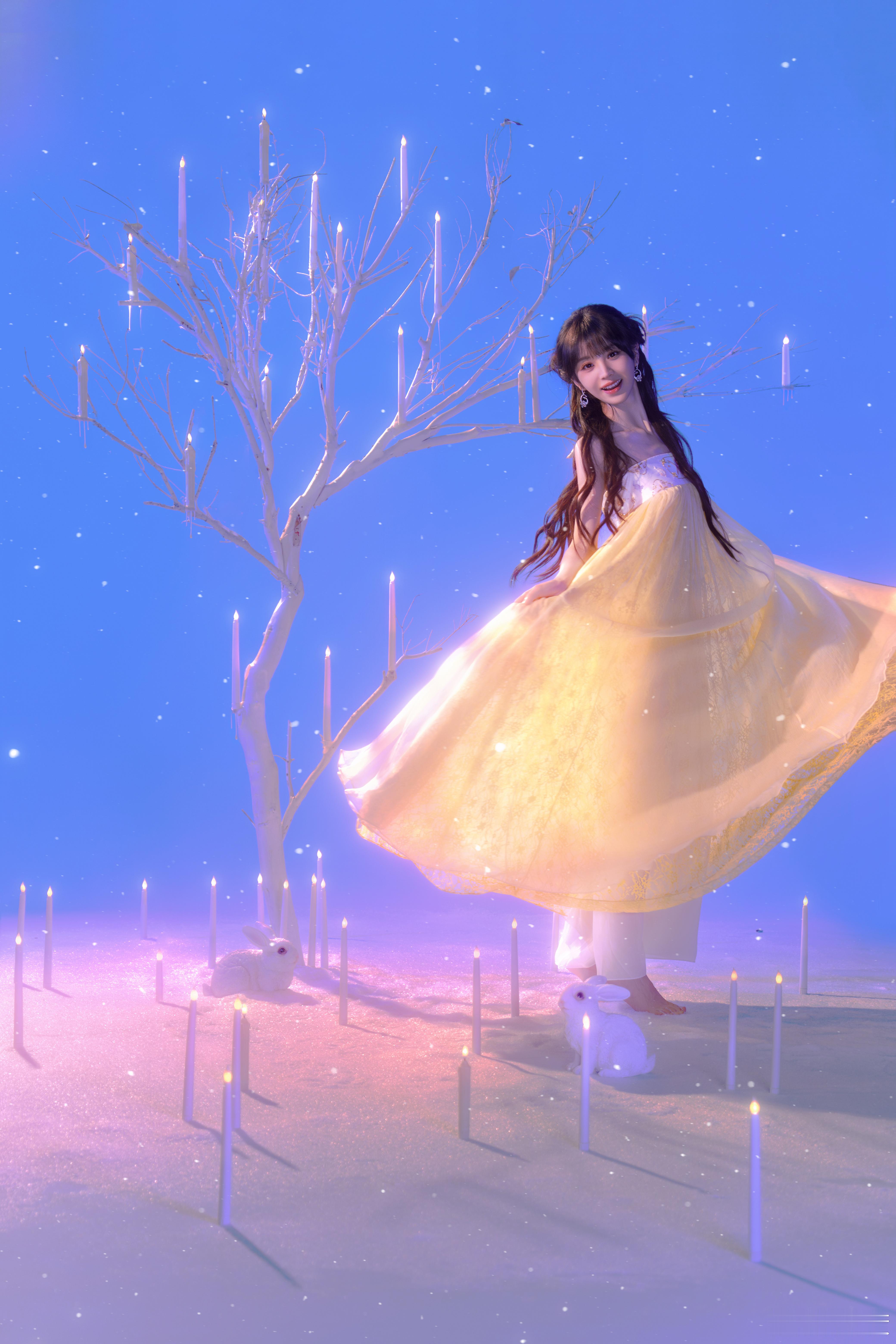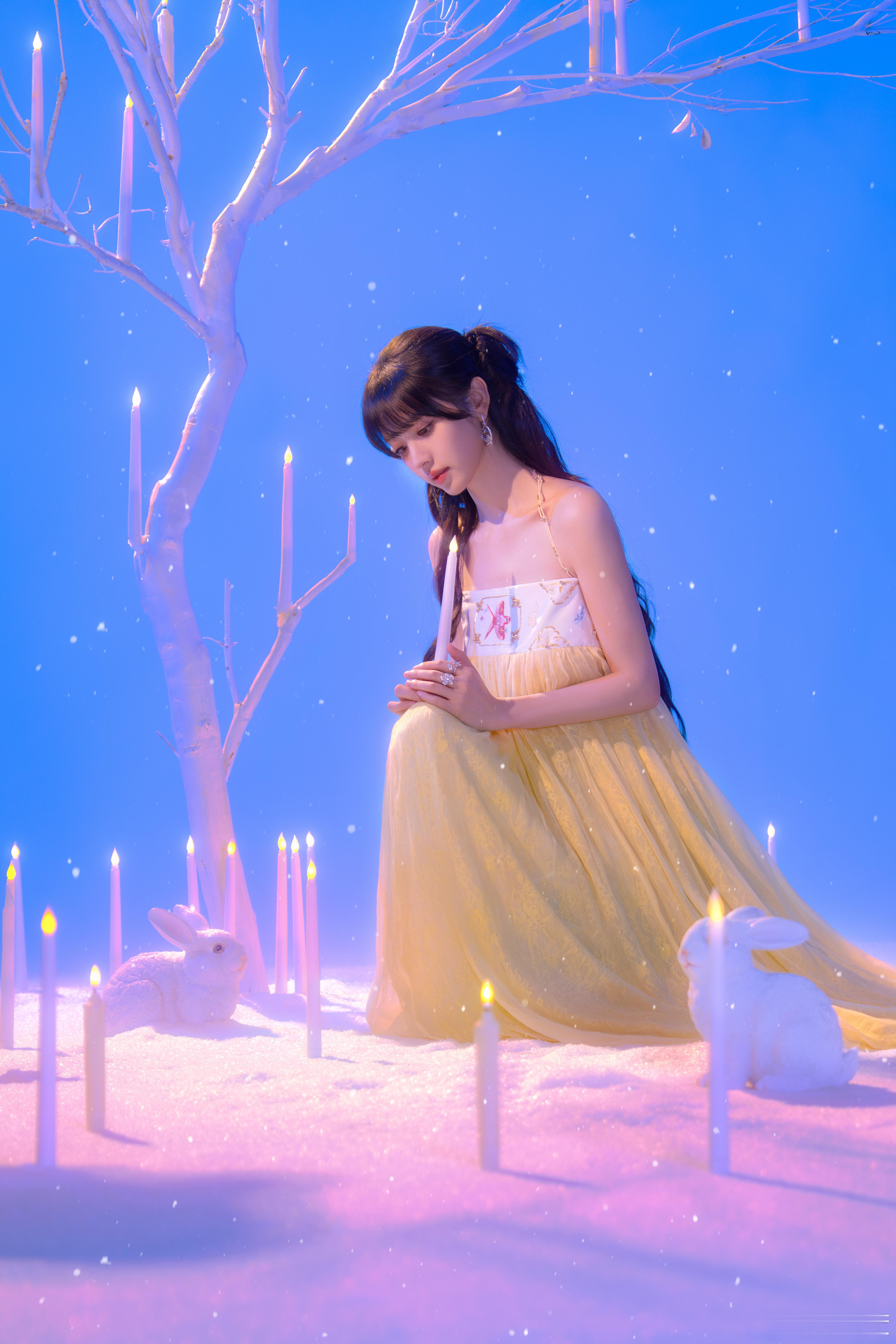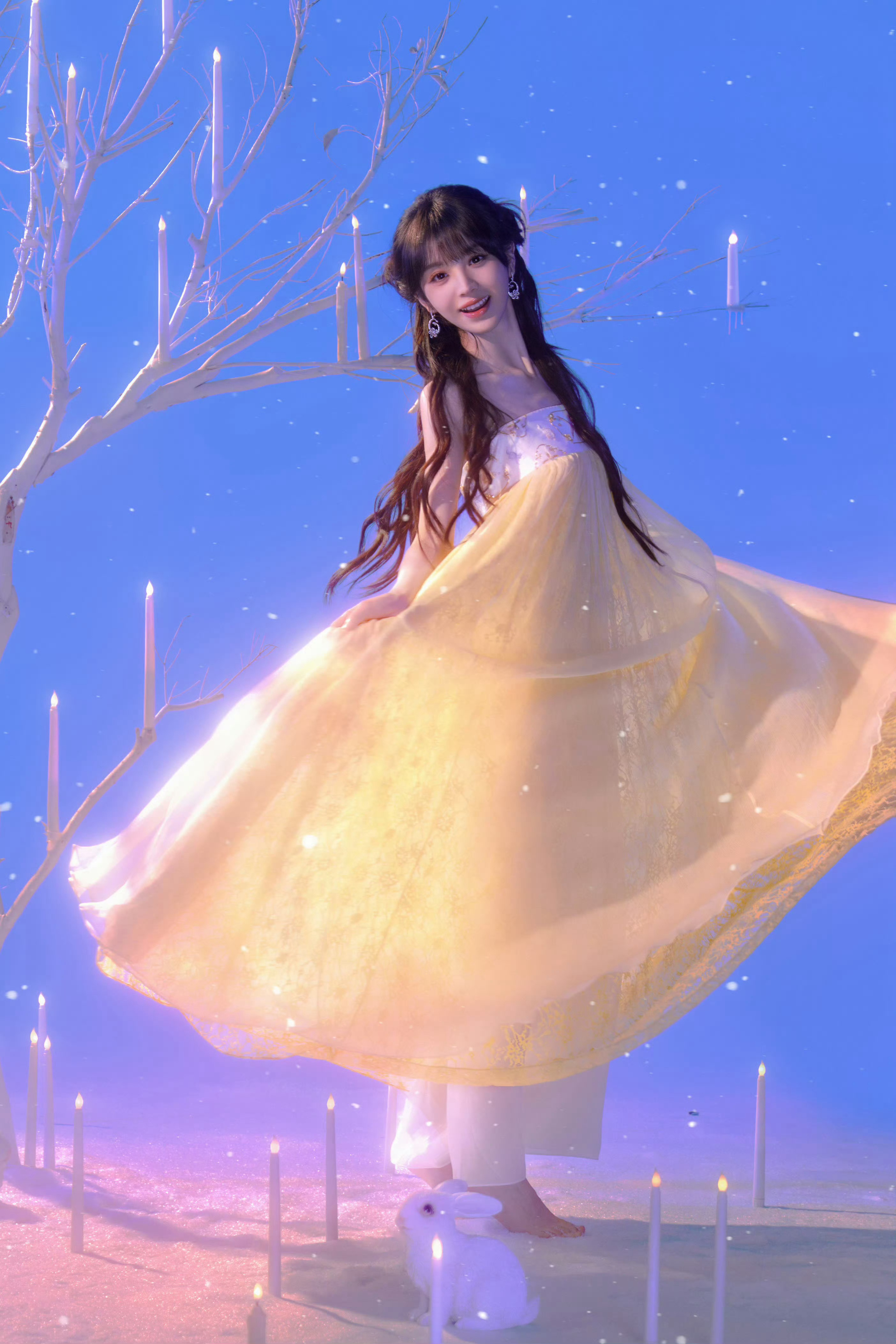 田曦薇x中秋营业照[爱慕]田曦薇鹅黄吊带襦裙txw田曦薇玉兔塑