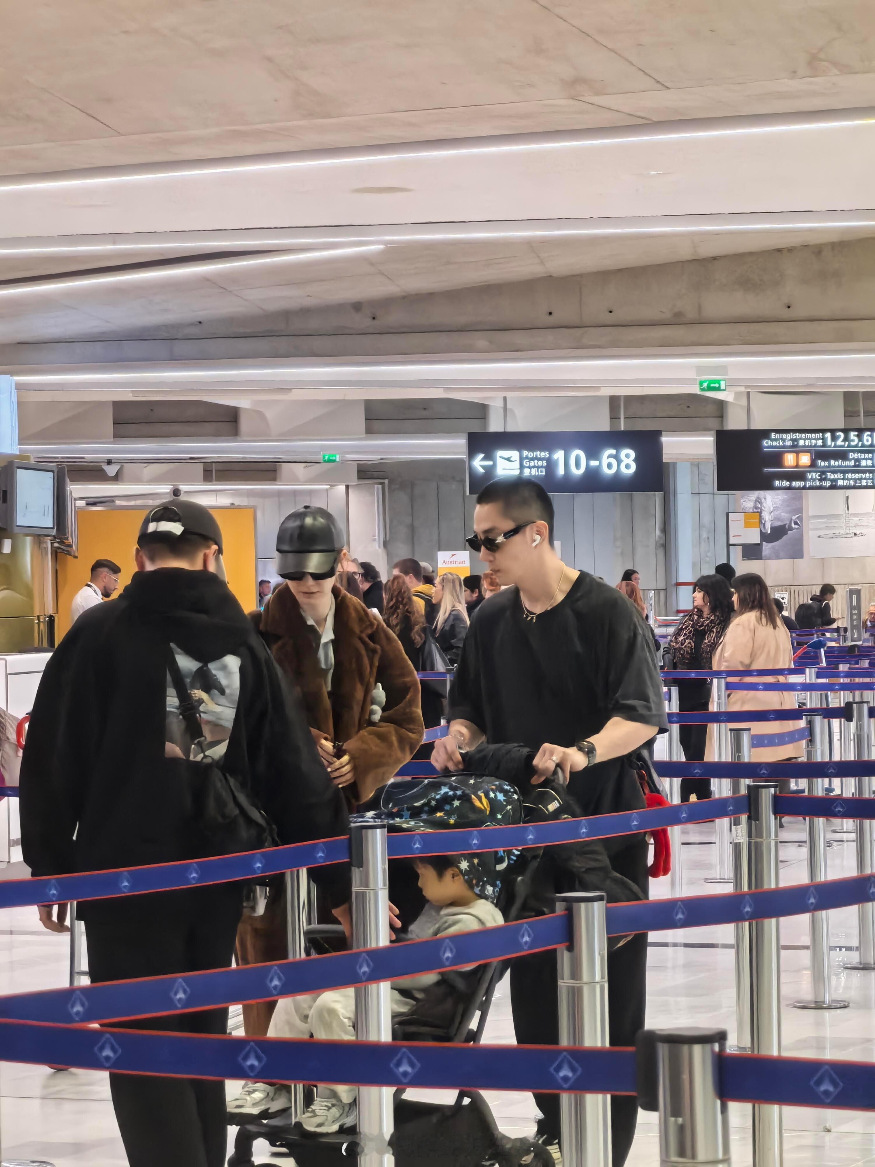 巴黎机场偶遇戚薇李承铉一家戚薇李承铉带儿子回国 感觉儿子挺高的