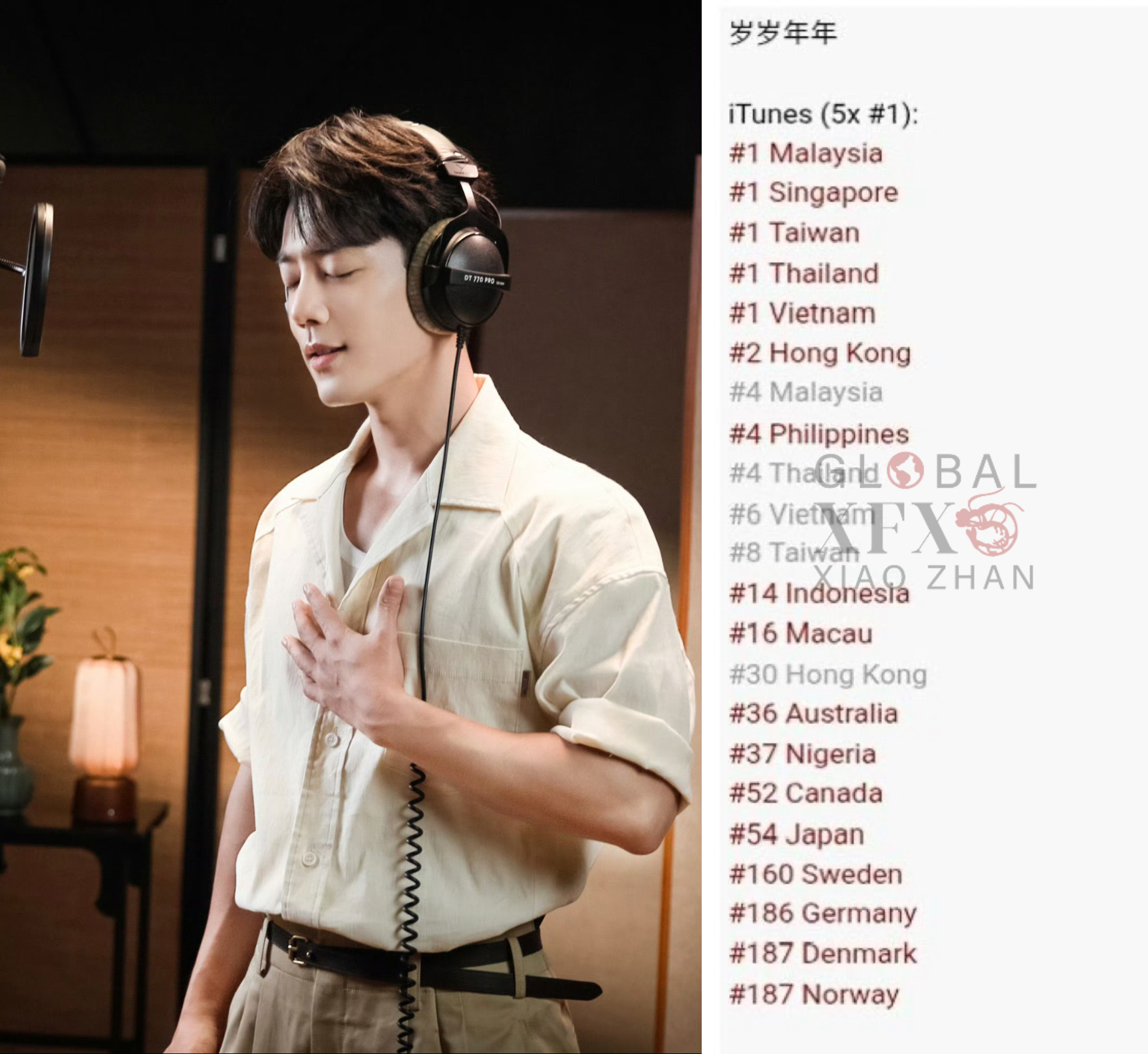 肖战中秋温暖献唱岁岁年年肖战新歌《岁岁年年》海外iTunes:全球iTunes榜第十五名,五个国家地区第一以及多地上榜~