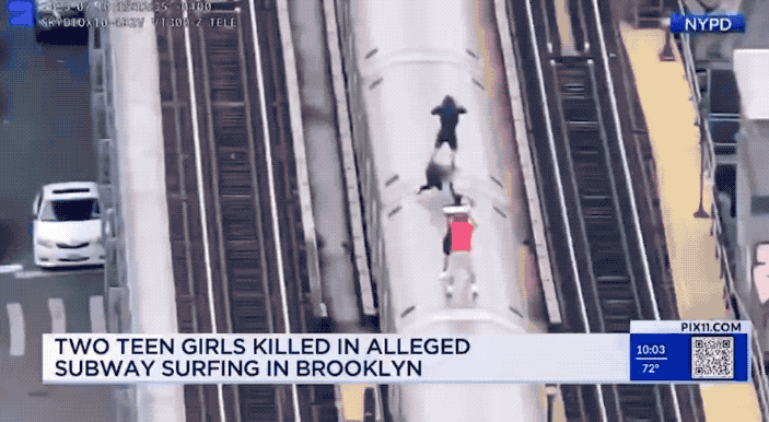 美国13岁白人女孩闲得难受作死:地铁冲浪当场摔死!近日,两名少女在布鲁克林地铁站