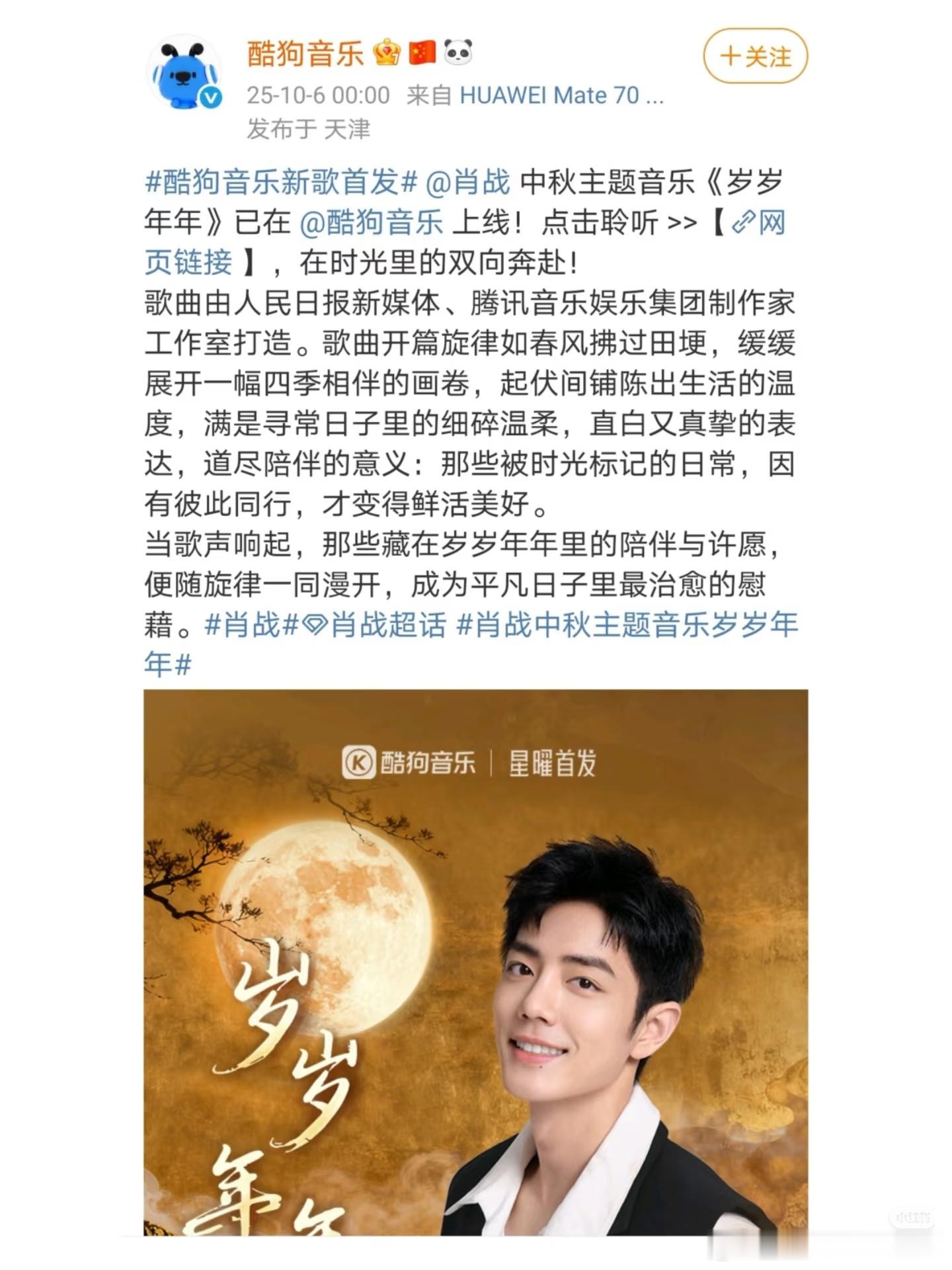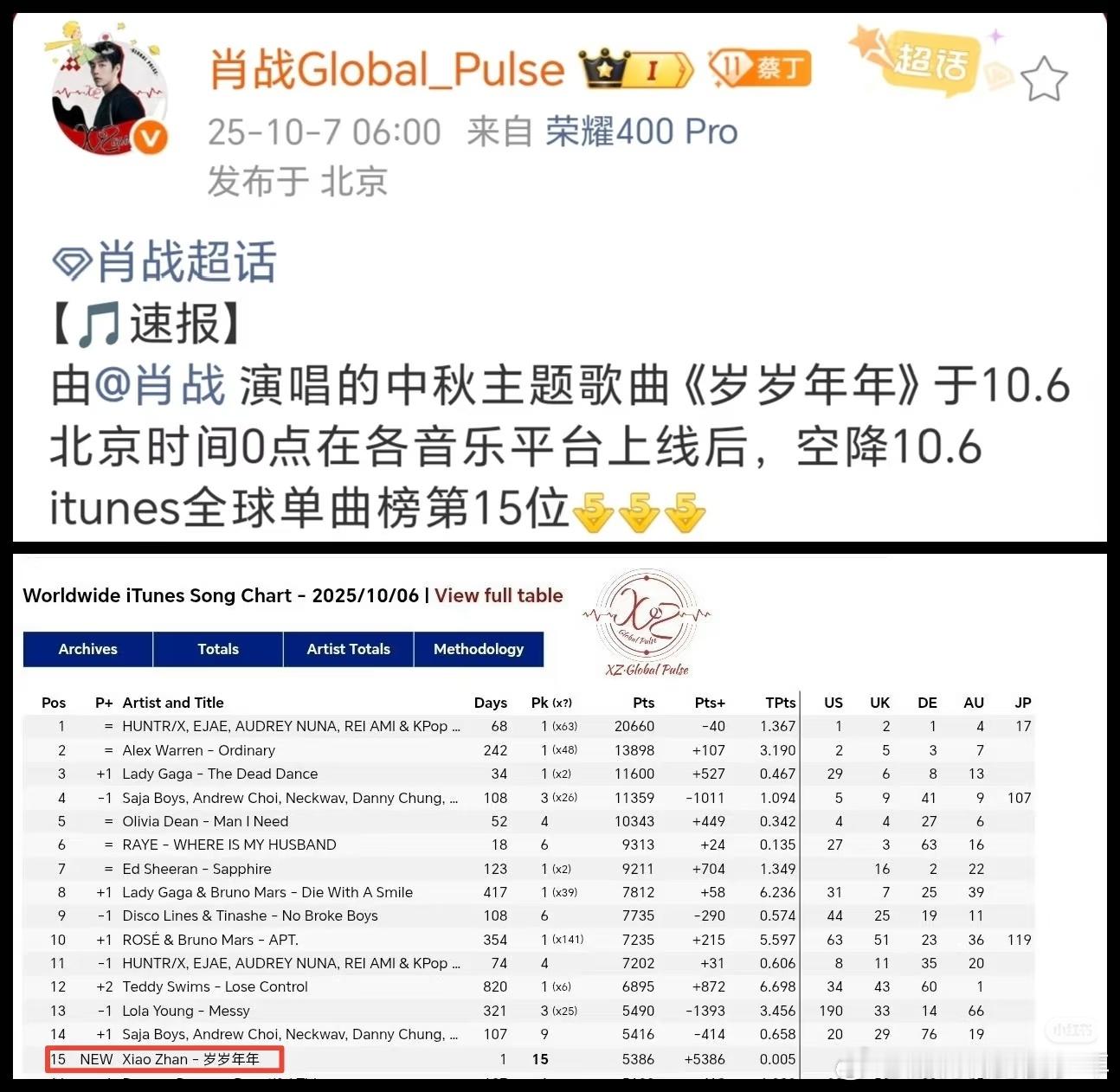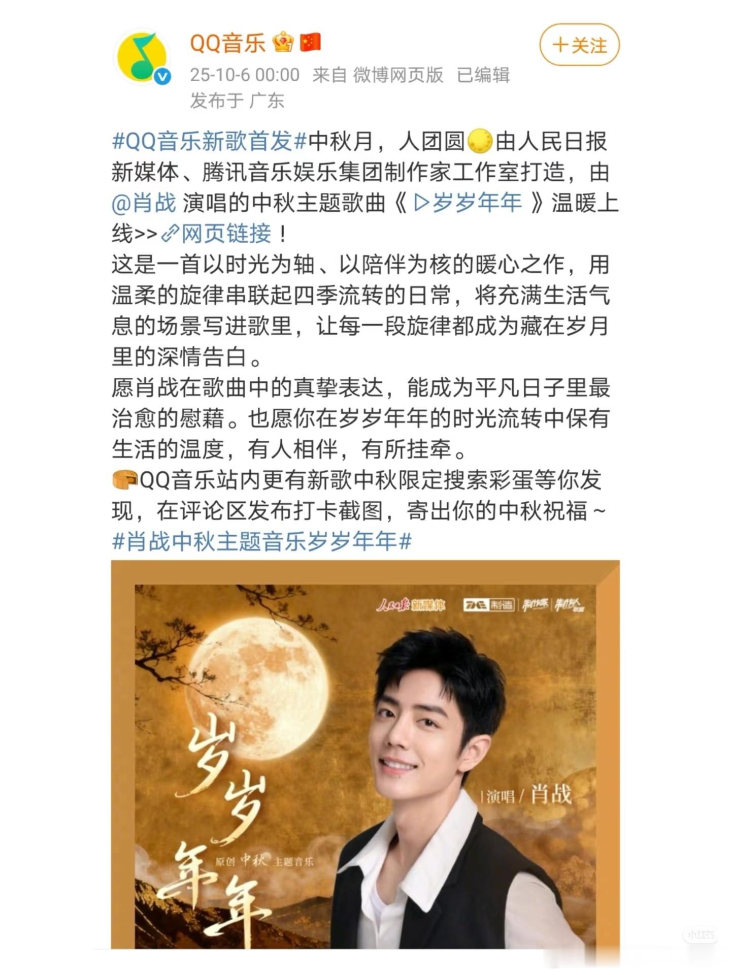 肖战的《岁岁年年》10月6日空降iTunes全球单曲榜第15位!各大主流媒体矩阵
