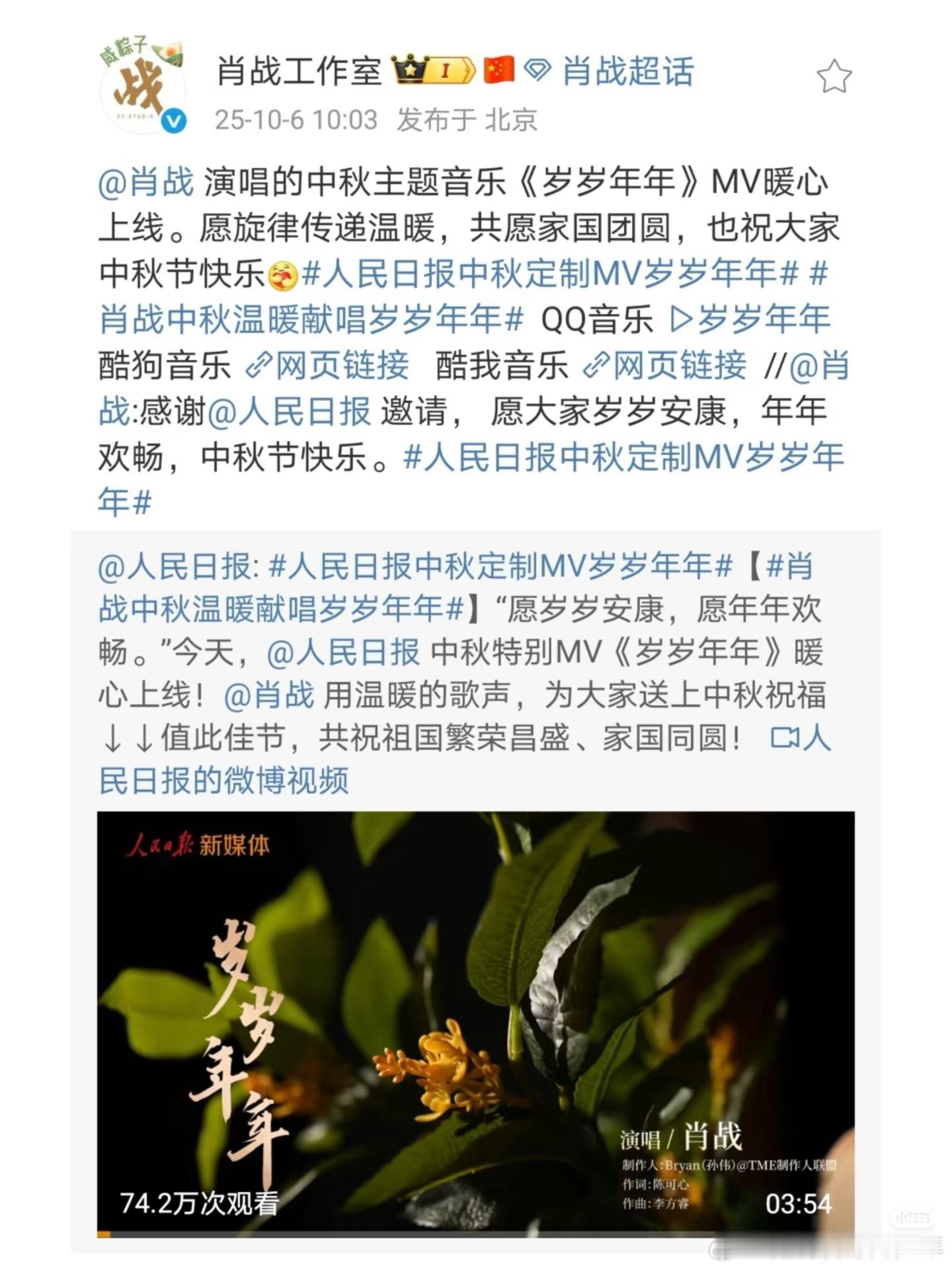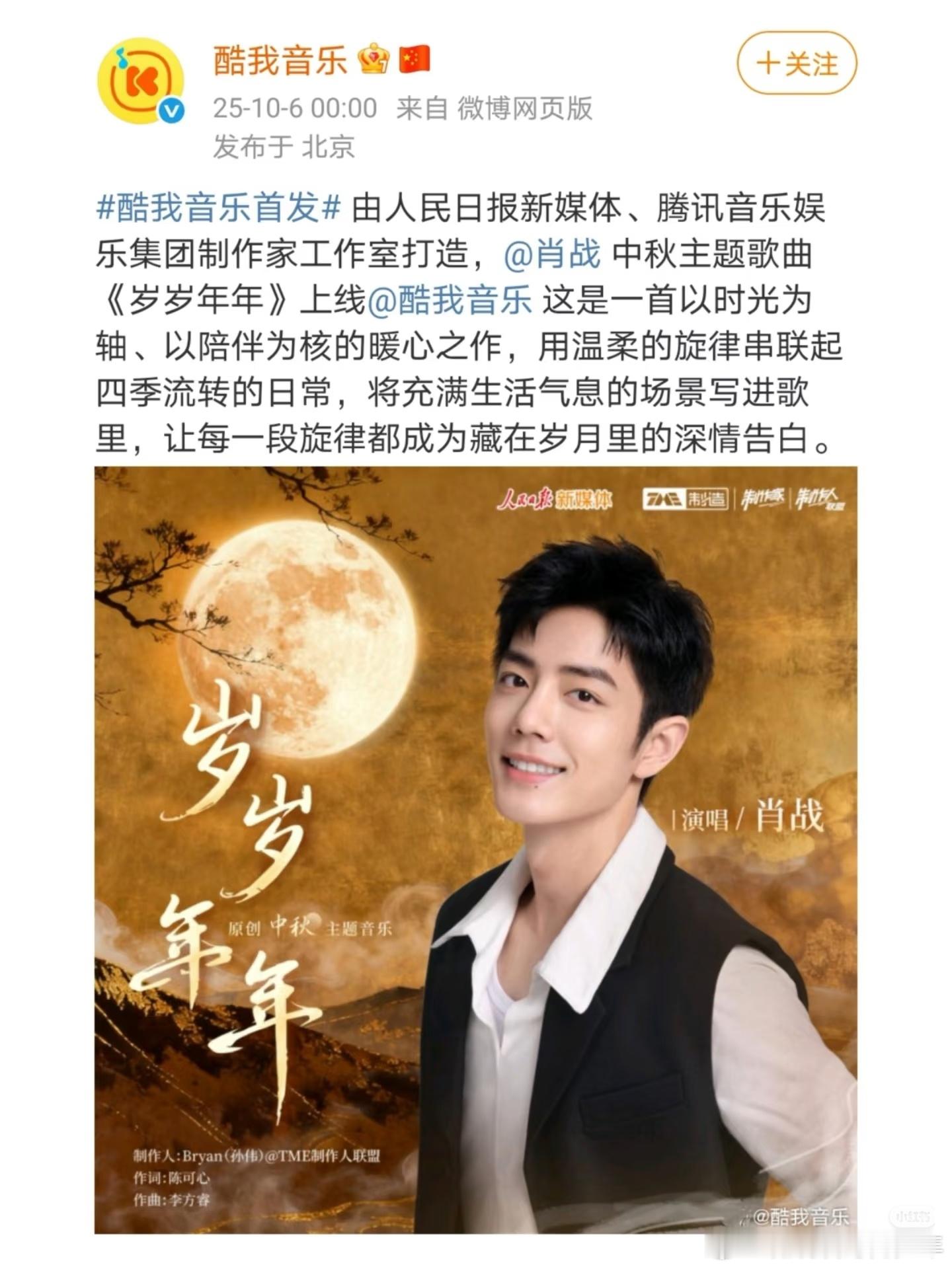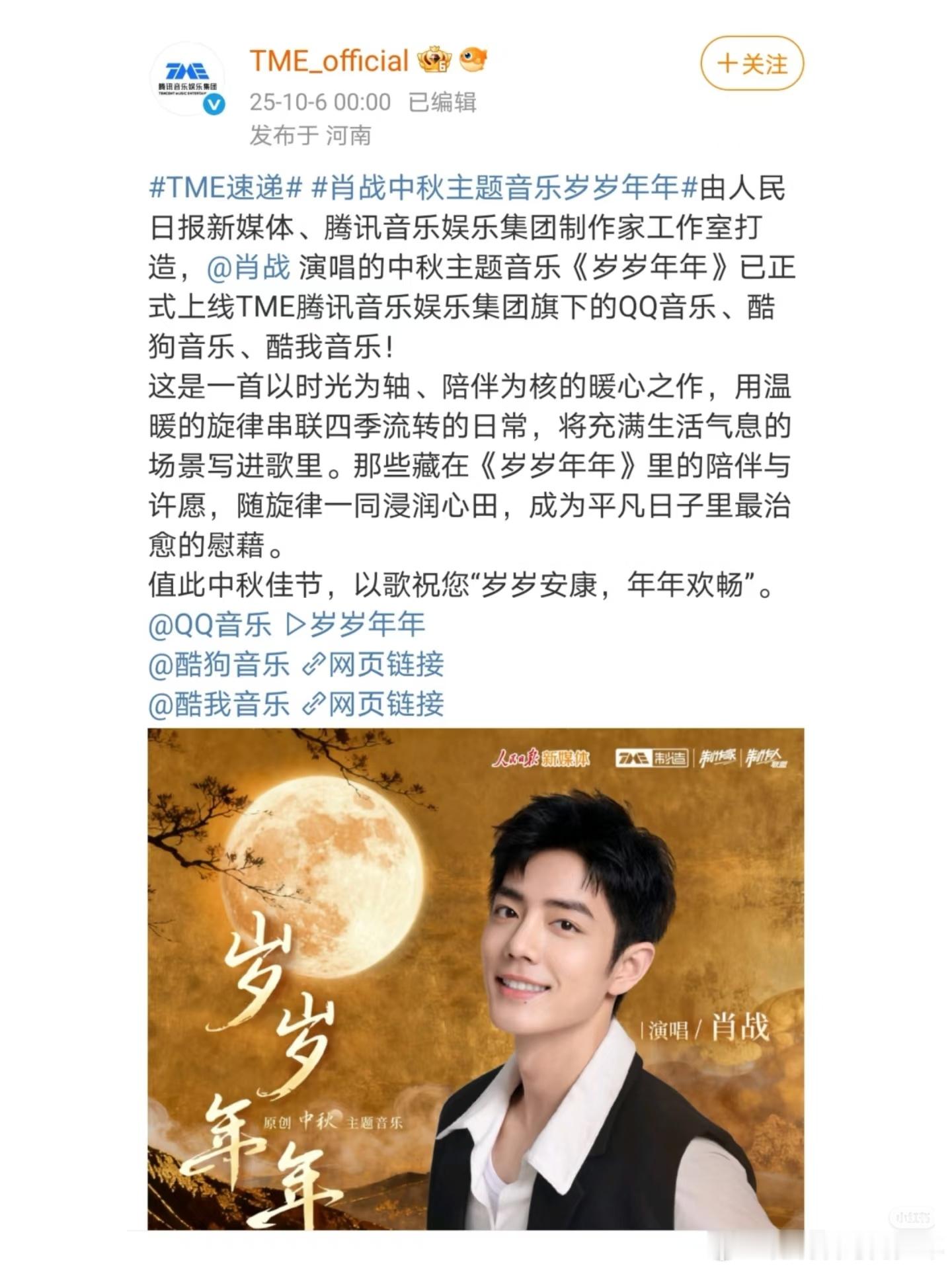 肖战的《岁岁年年》10月6日空降iTunes全球单曲榜第15位!各大主流媒体矩阵