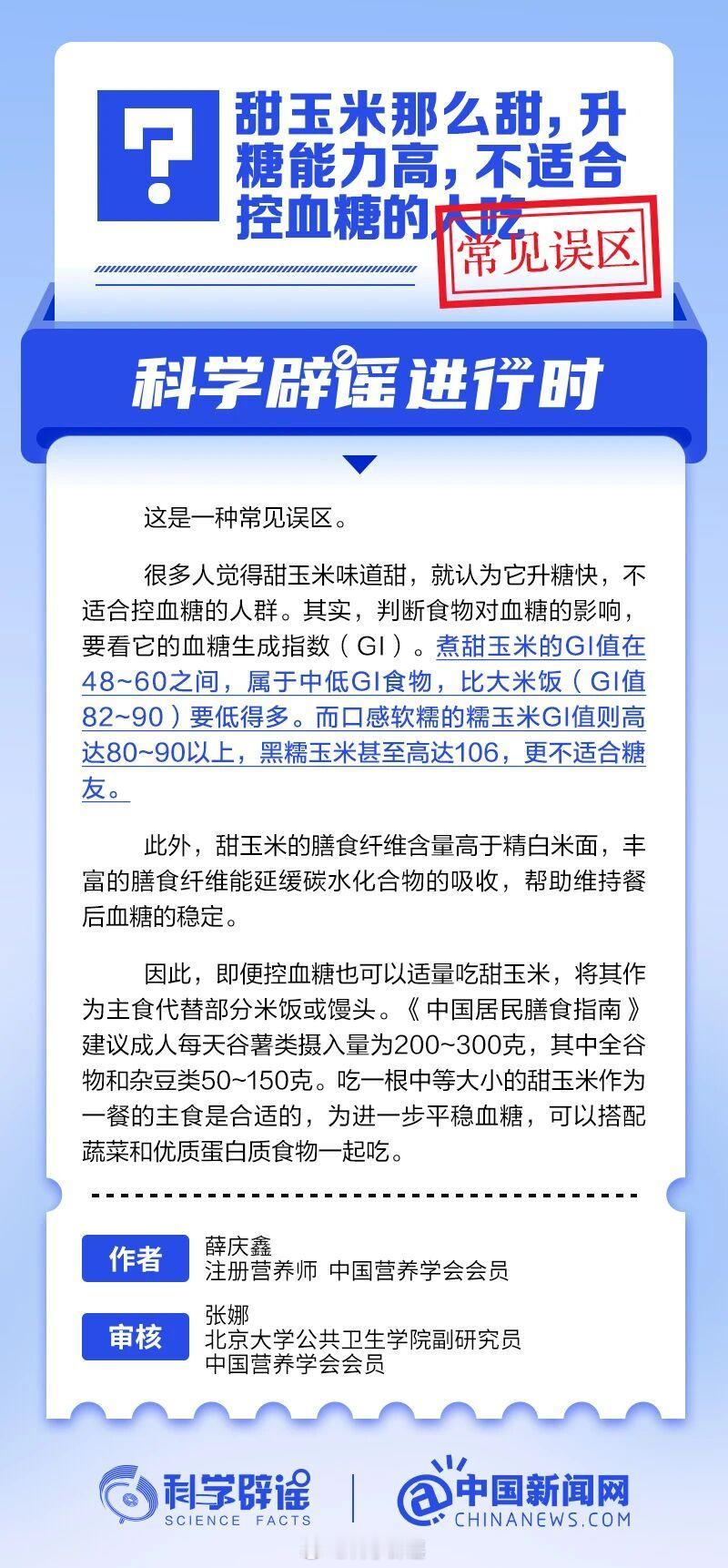 科学辟谣进行时【甜玉米升糖快,不适合控血糖的人吃?别再被误导】很多人觉得甜玉米