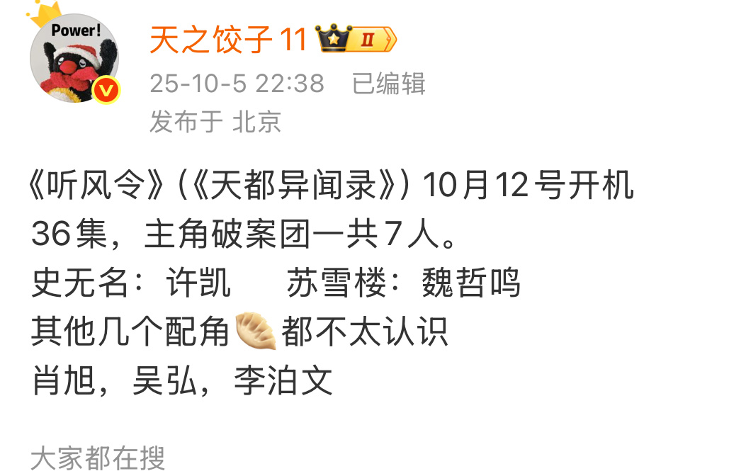 兜兜转转 这双男主饼《听风令》还是许凯的啊……