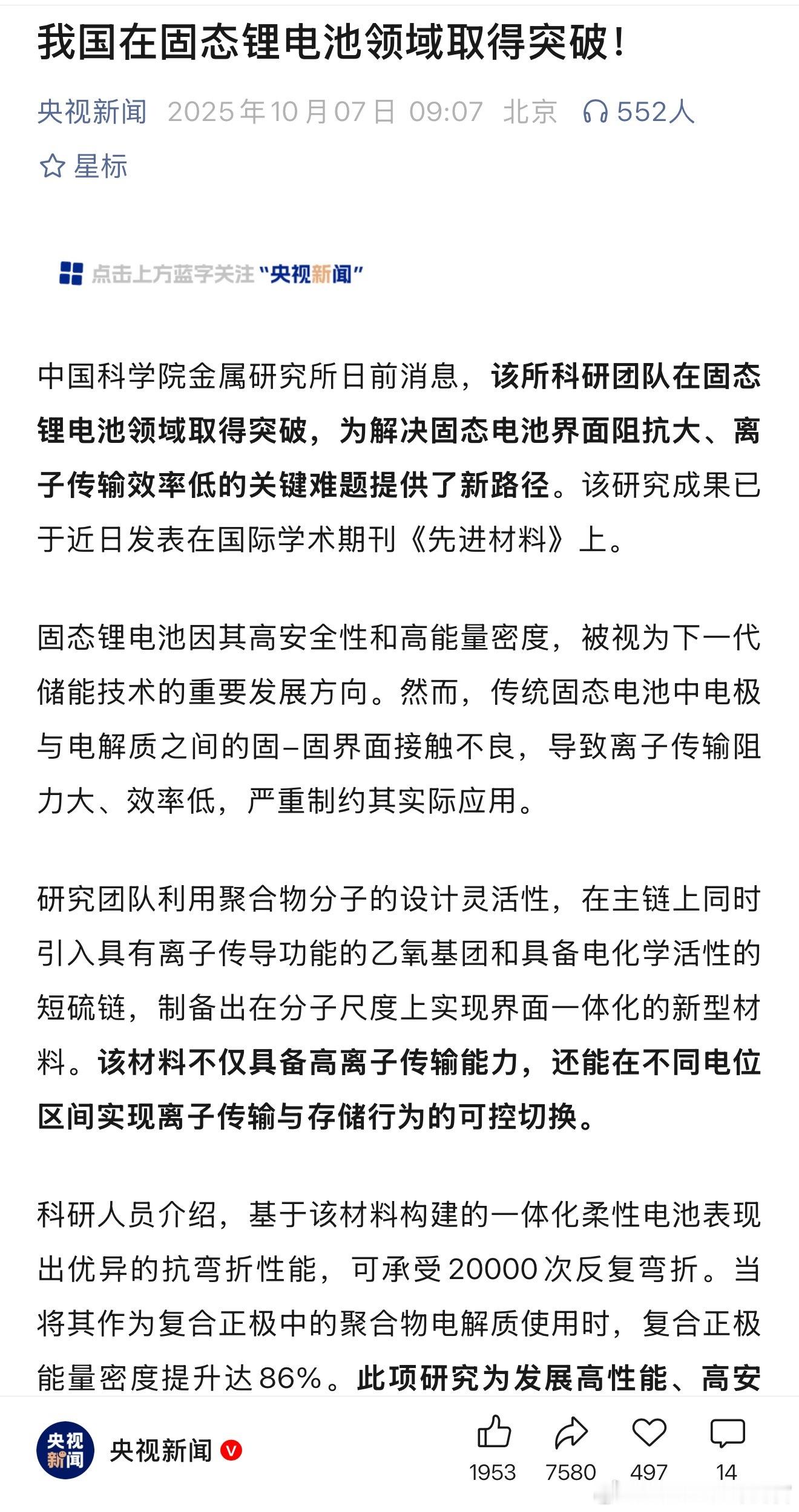 央视发文,固态电池有了新突破