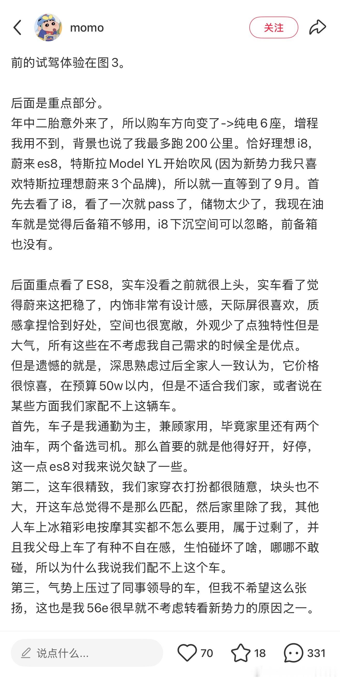 一个有二胎的奶爸真实试驾过Model YL、蔚来ES8、理想i8之后选了特斯拉[笑cry] ​​​