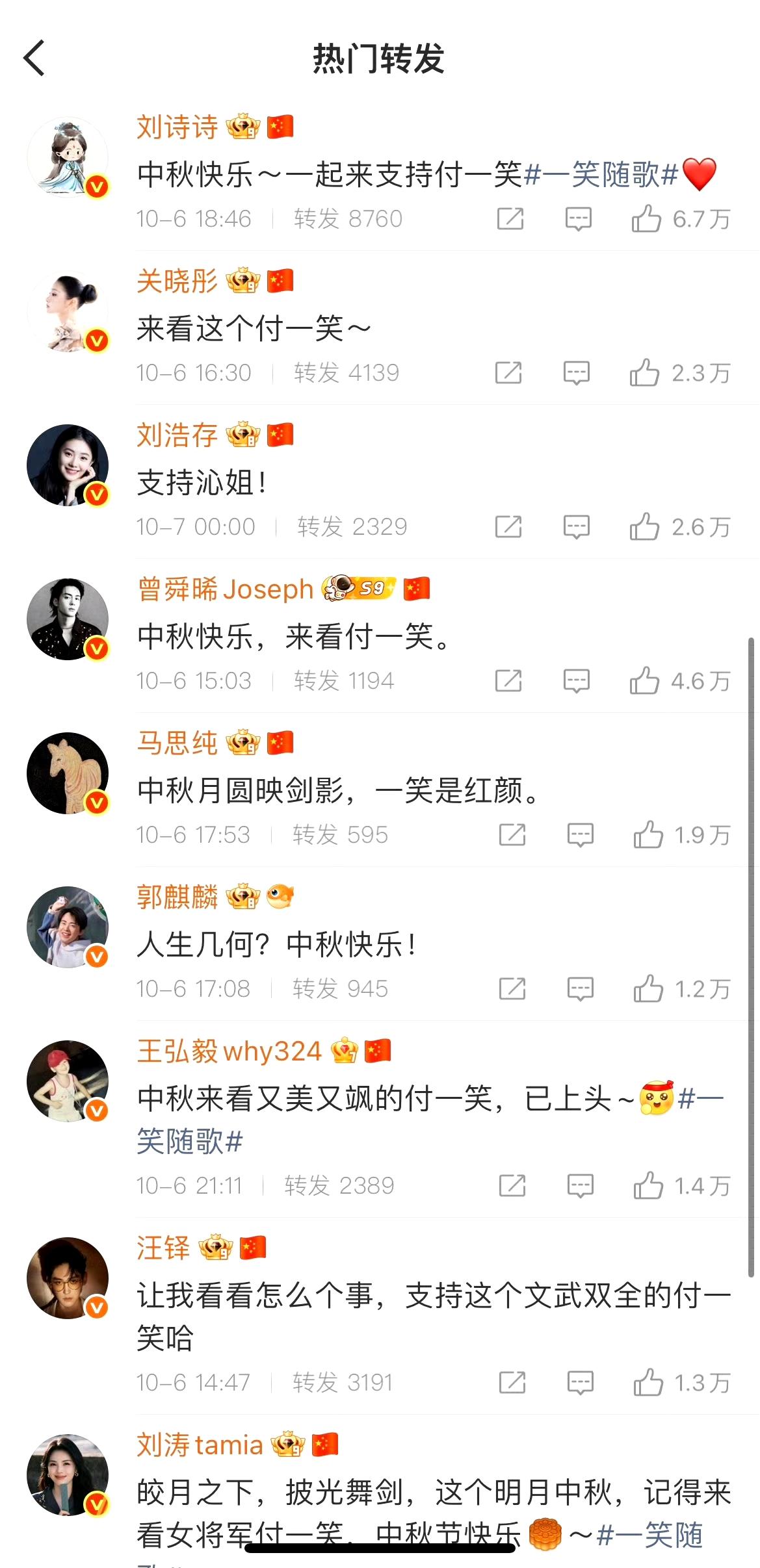 李沁的人脉还是挺广的! 她的新剧《一笑随歌》开播,这么多的好友助阵帮忙宣传。