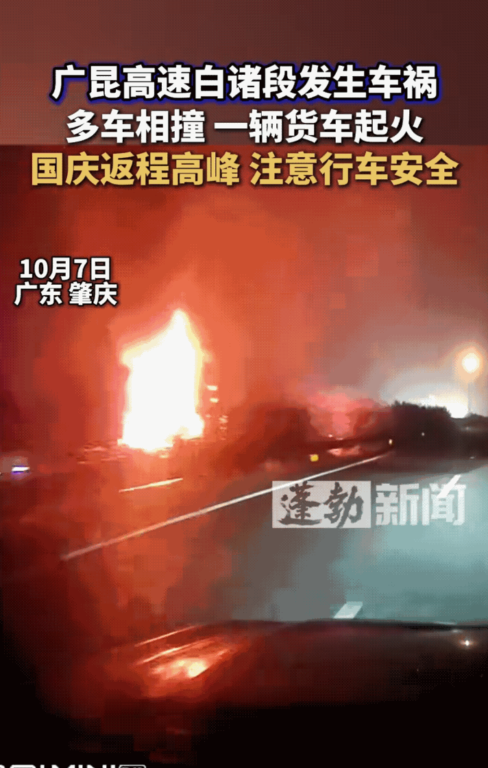 伤亡不明!高速发生连环撞击事故,事发10月7日凌晨,G80广昆高速肇庆至广州路段