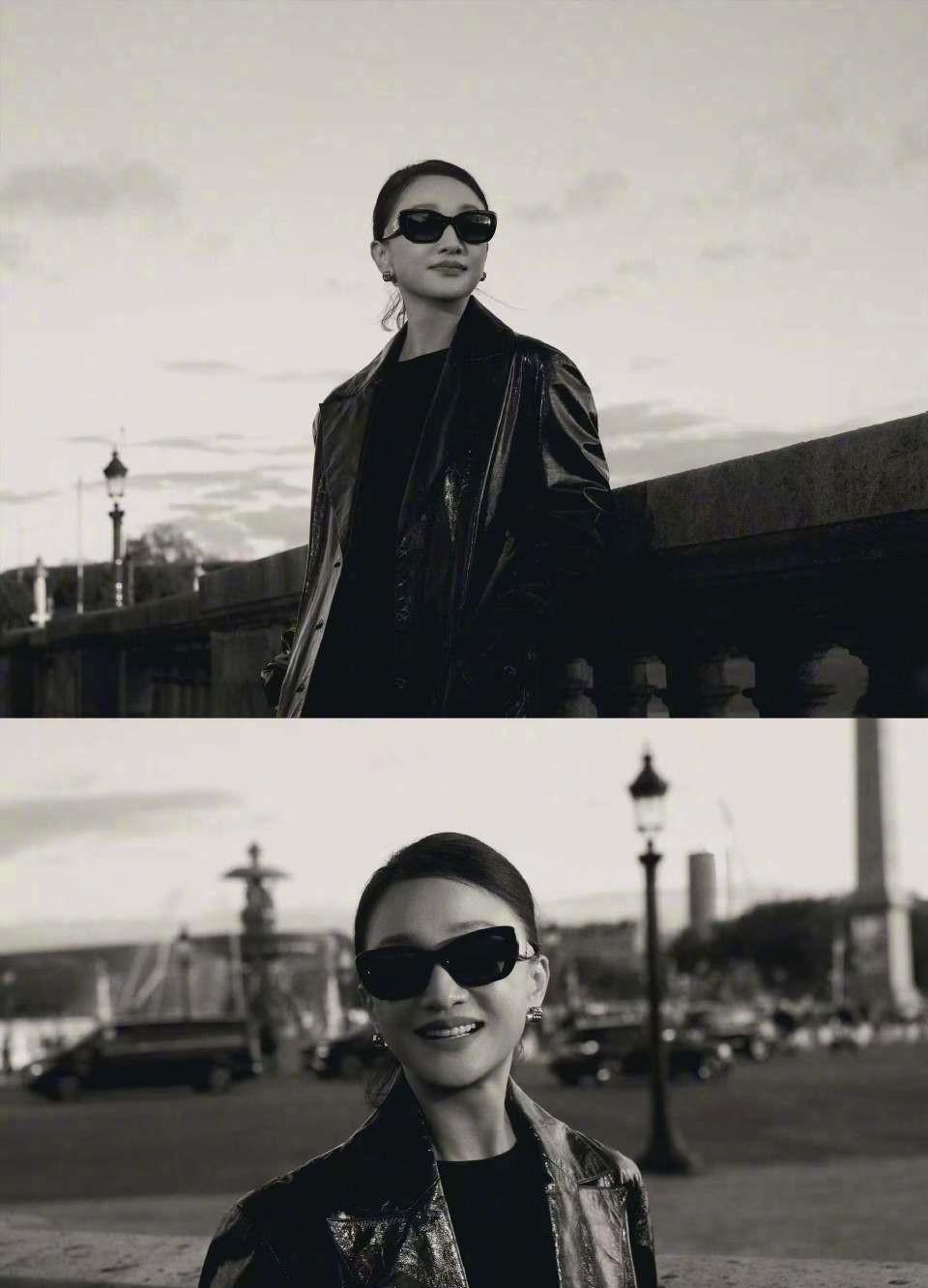 巴黎新桥区偶遇周迅,她来看香奈儿大秀,秀还没开始,她就“偷跑”出来玩啦,这才被网