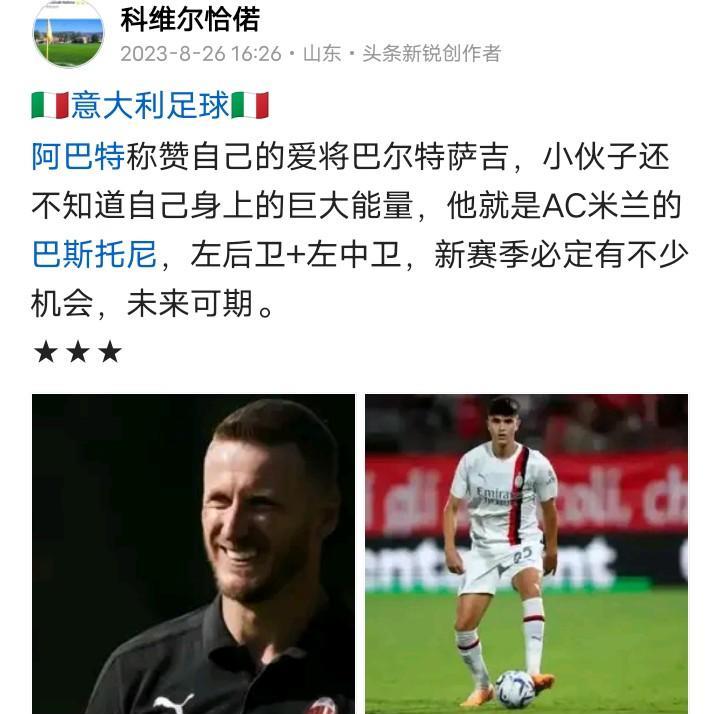 巴尔特萨吉受到阿森纳的关注 如果他早点能遇到一个孔蒂似的教练 下一个巴斯托尼就出来了