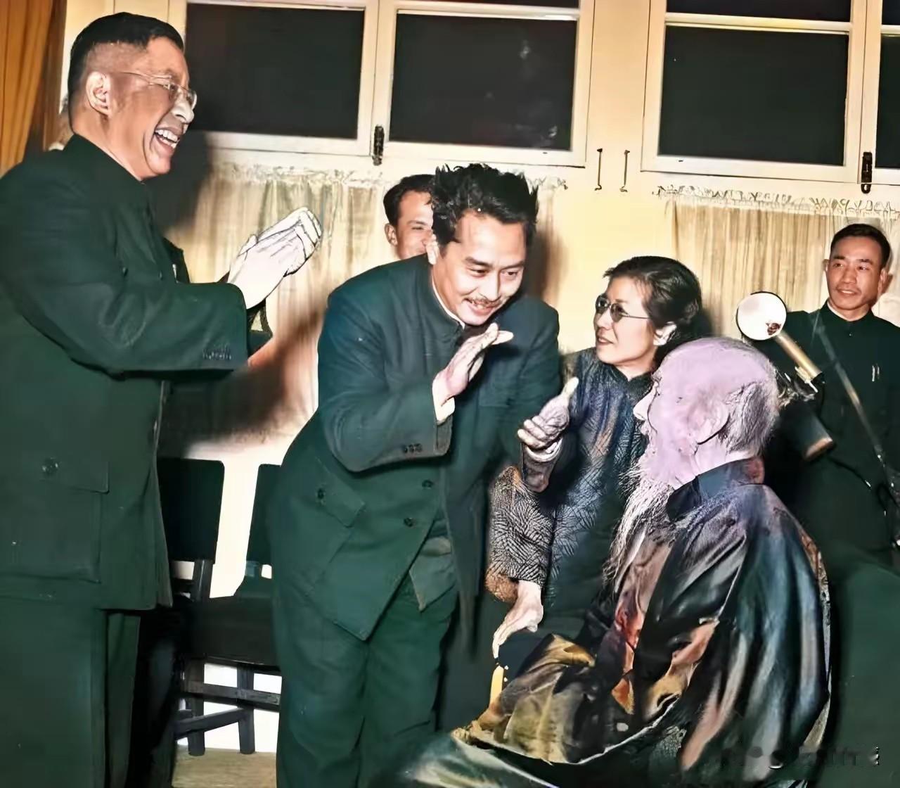 齐白石老人过生日,来的应该都是文艺大咖,照片中的齐白石须发皆白,一身仙风道骨的样子,目测这年龄,至少也应该是90岁以上了,从照片中也能够感受到了,那时候的文艺氛围是非常好的,大家对老艺术家也是非常尊敬的,而且那时候的艺术家的确有本事,比如齐白石老人画的大虾,那可是一绝,现在好像也无人能够超越!